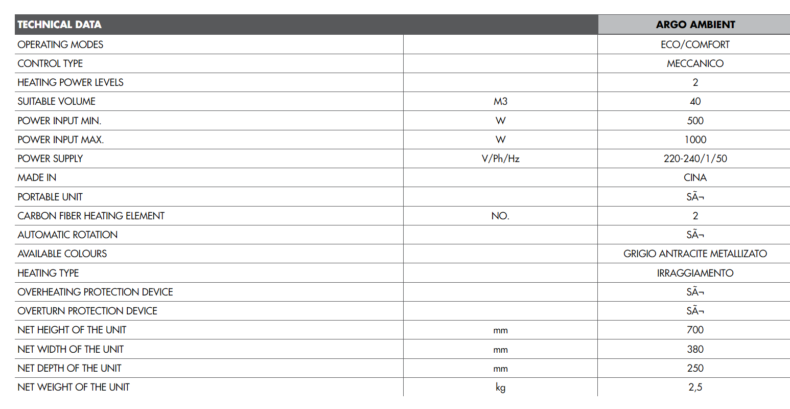 1050W, tower heater, carbon fibre element, grey, Argo AMBIENT