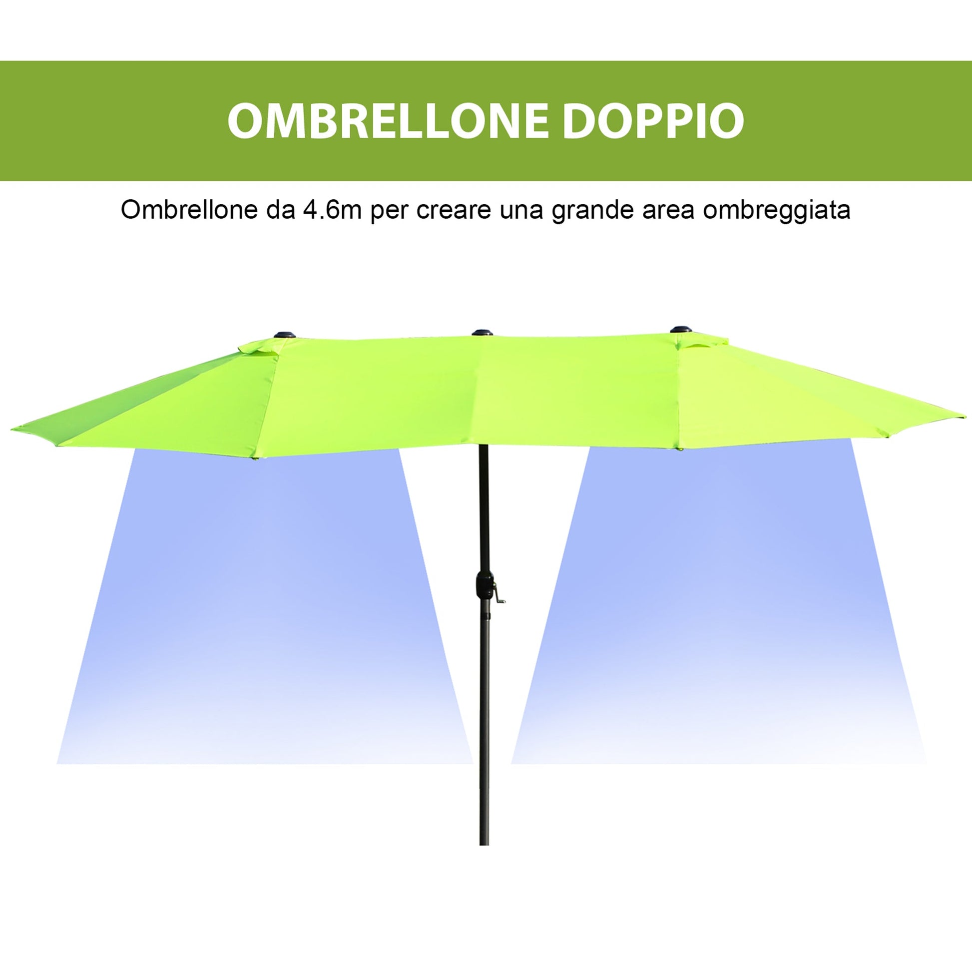 Double Garden Umbrella with Crank Opening, in Steel and Polyester, 460x270x240 cm, Light Green