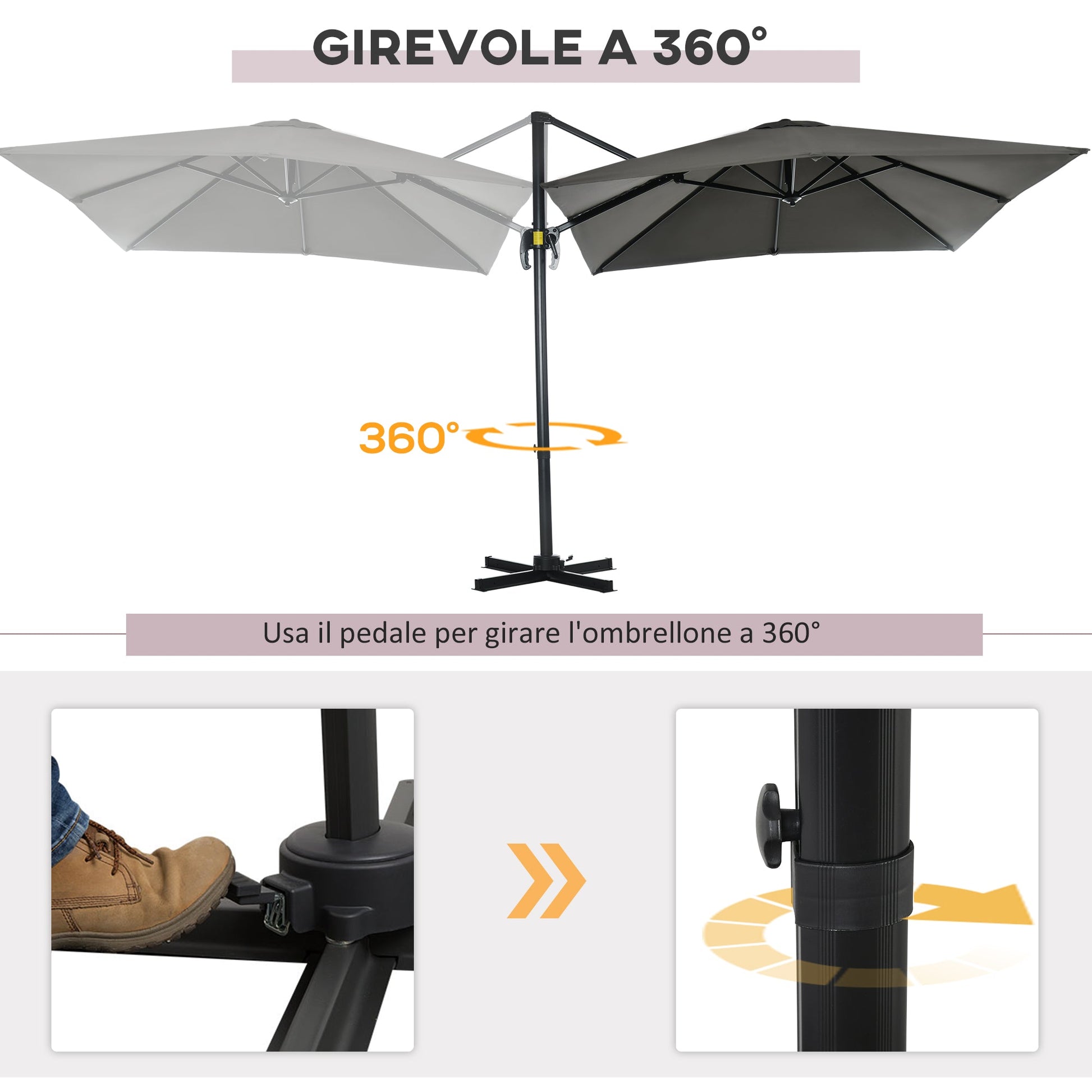 - 360° ROTARY: Our outdoor umbrella can be rotated 360° thanks to the practical pedal, to protect you from the sun at any time of the day and create a constant shaded area in your garden.