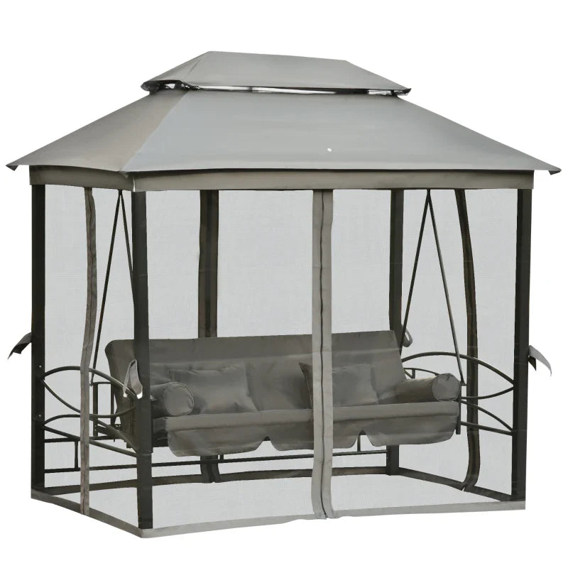 - 3-IN-1 DESIGN: Garden swing, lounger, and gazebo all in one! This swing with gazebo cover lets you relax and stay protected from the sun. It's ideal for any outdoor space, including gardens, terraces, poolside, and backyards.