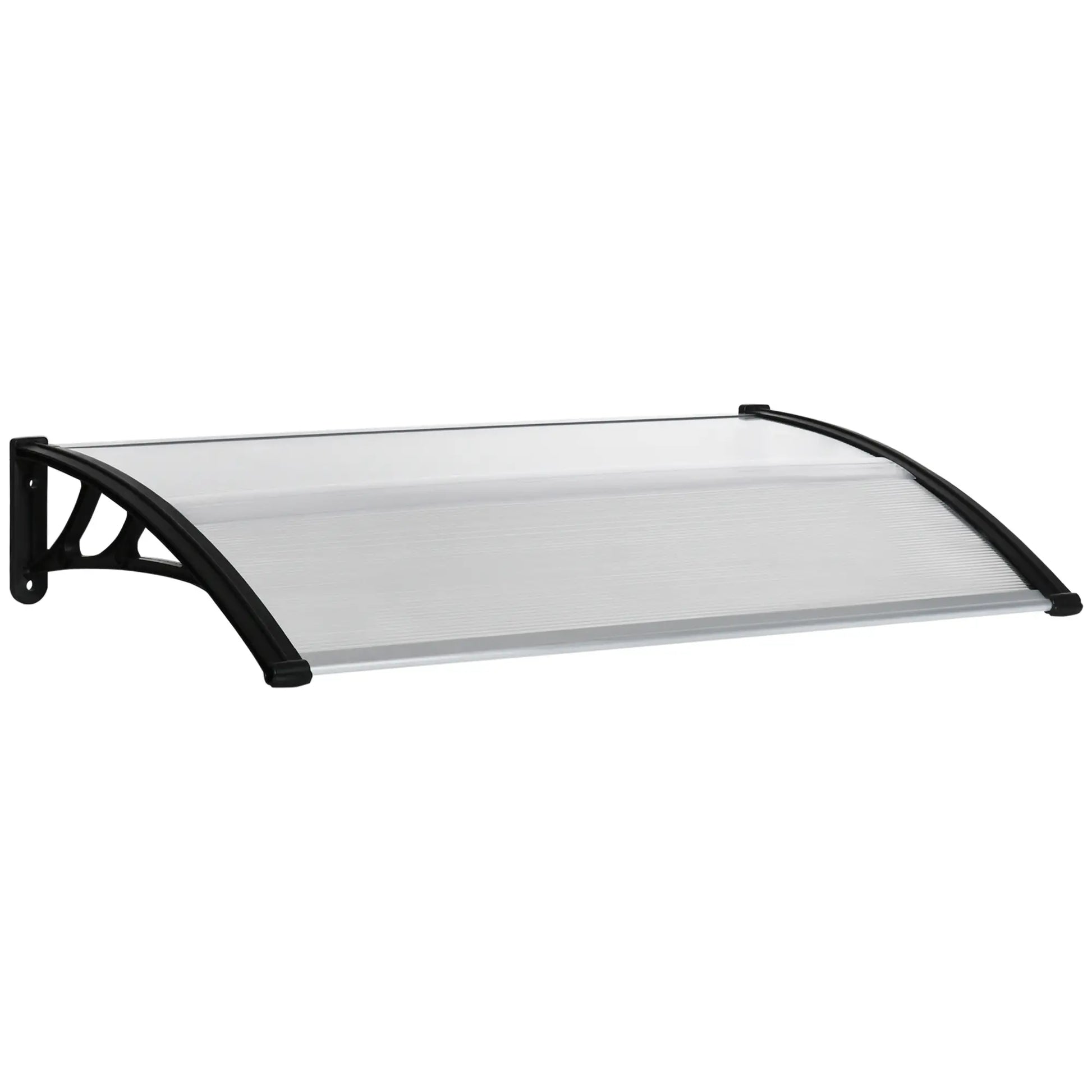- RESISTANT: The side brackets for fixing to the wall are made of rigid PP plastic and are connected to the aluminum profiles of the polycarbonate panel ends. The canopy is also made up of 2 panels, joined by an H-shaped aluminum strip.