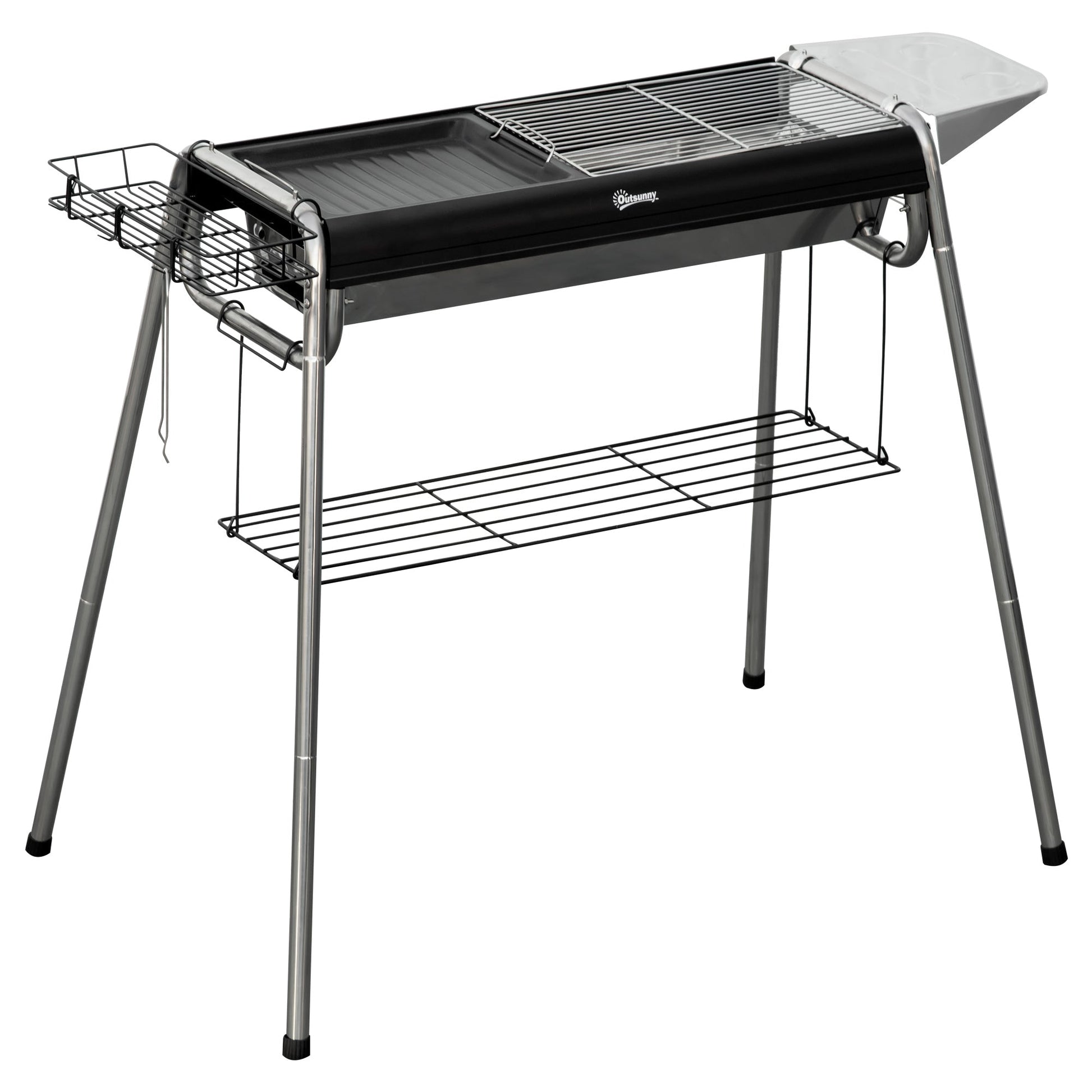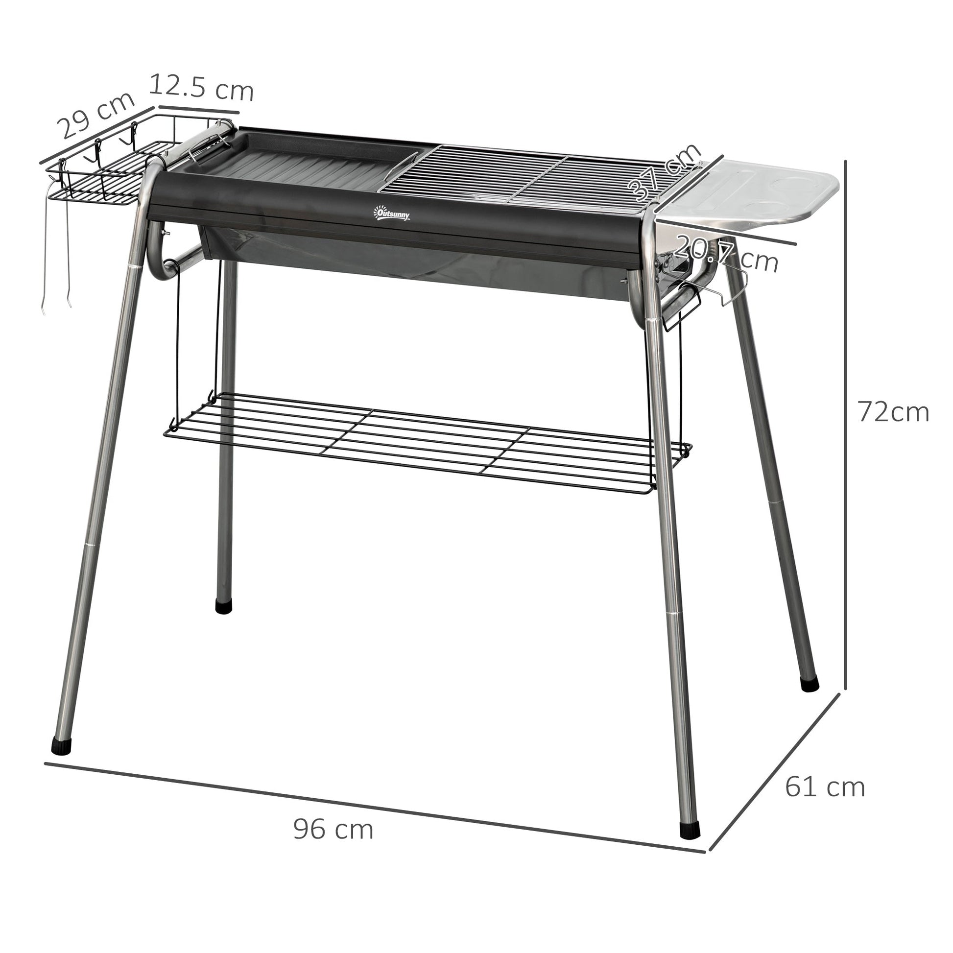 Charcoal Barbecue with Grill and Cooking Plate, Basket and Shelves, 96x61x72cm, Black