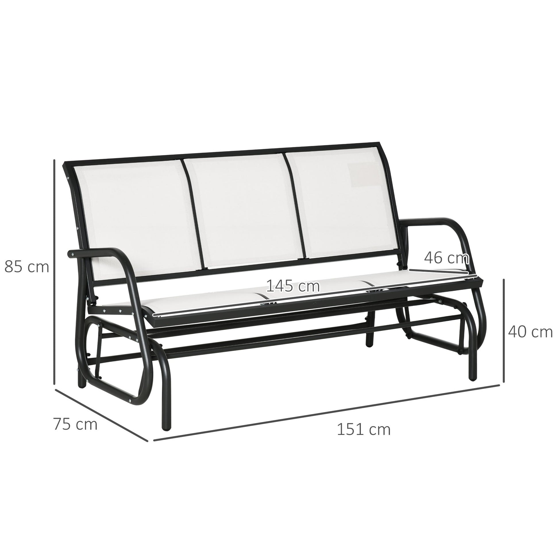 - STURDY DOUBLE FRAME: This rocking bench has a wide seat and backrest that can accommodate three people. The powder-coated metal frame supports up to 300kg.