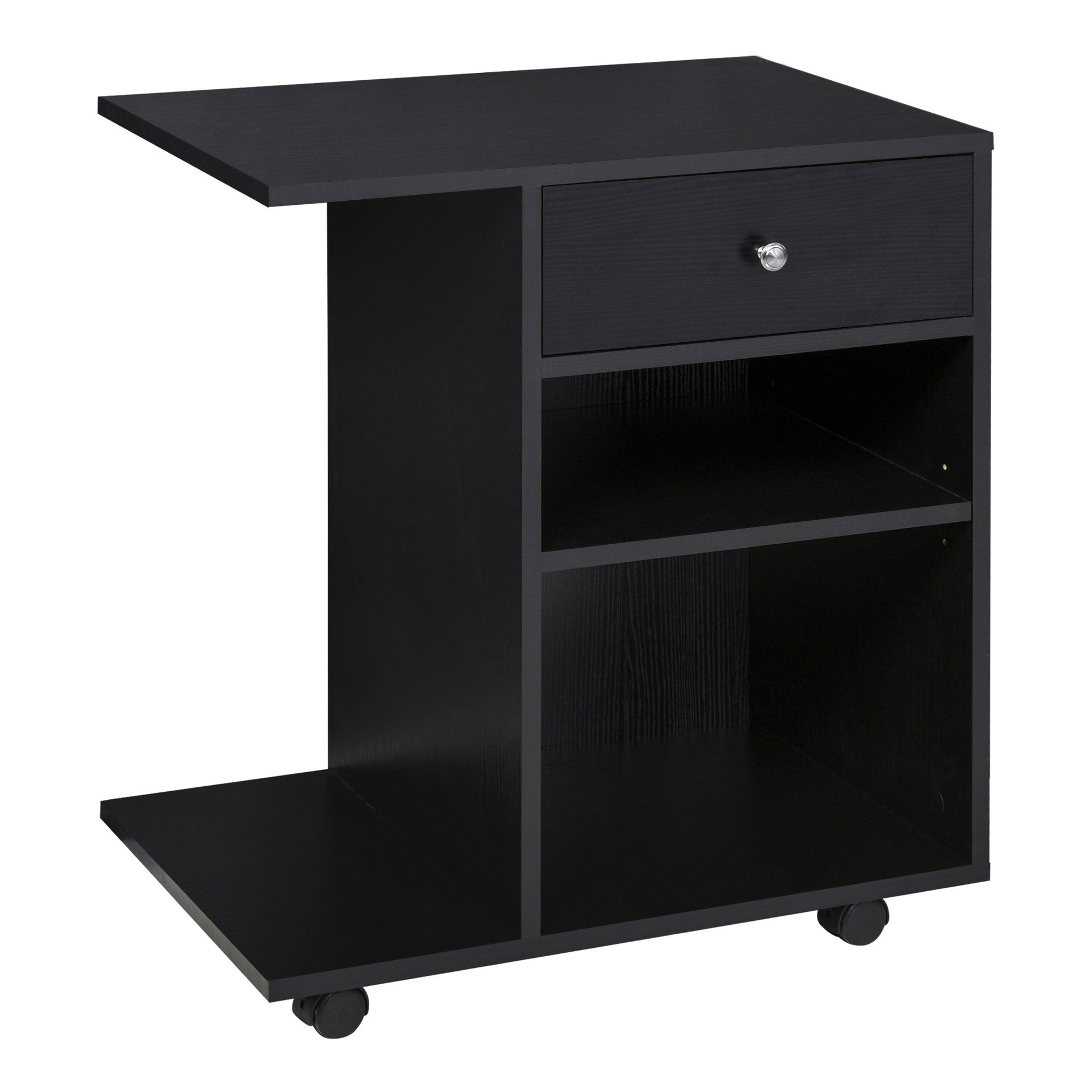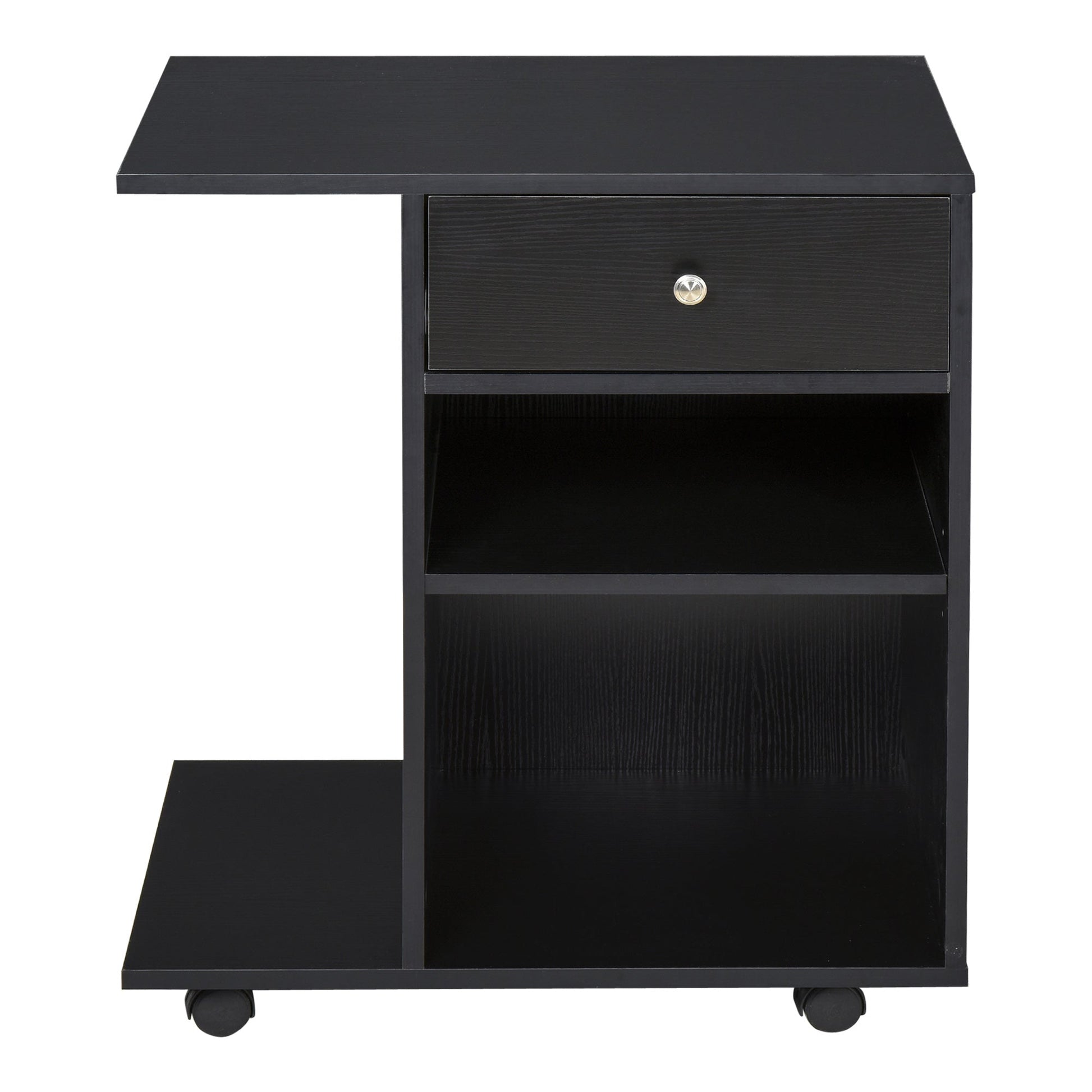 Printer Stand in Black Wood with 1 Drawer, 2 Shelves and CPU Shelf, for Office 60x40x68.5cm