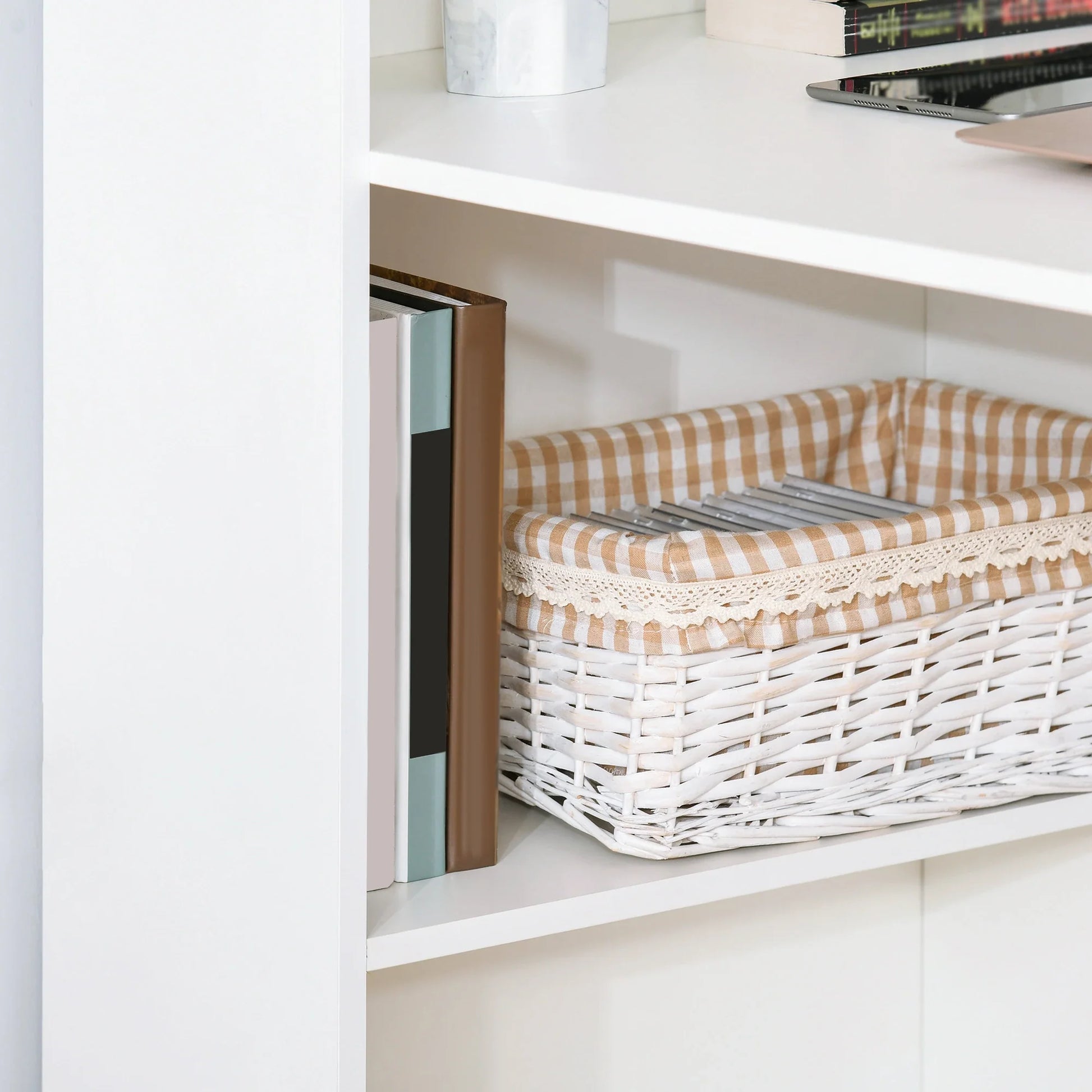 - ALL-INCLUSIVE: This modern desk features multiple shelves on both sides, allowing you to store folders, books, electronics or even just display some of your knick-knacks.