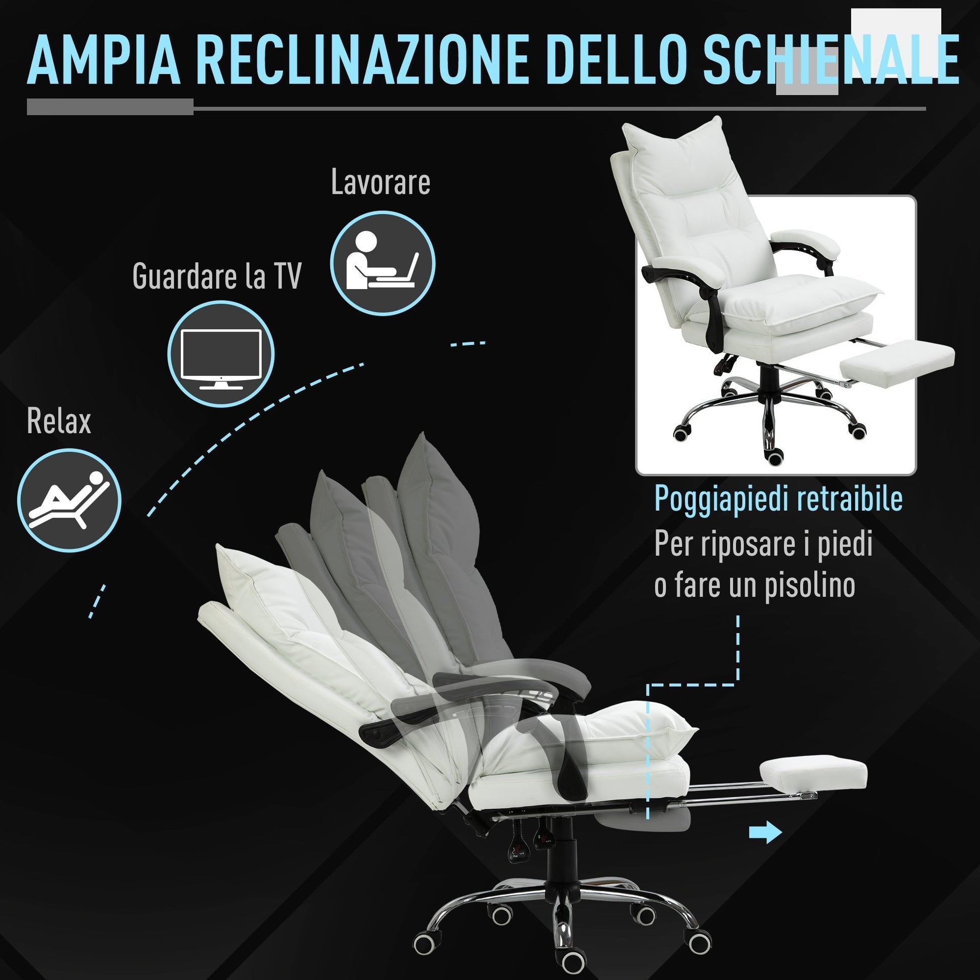 White Faux Leather Office Chair, Adjustable Height with 155° Reclining Backrest and Footrest