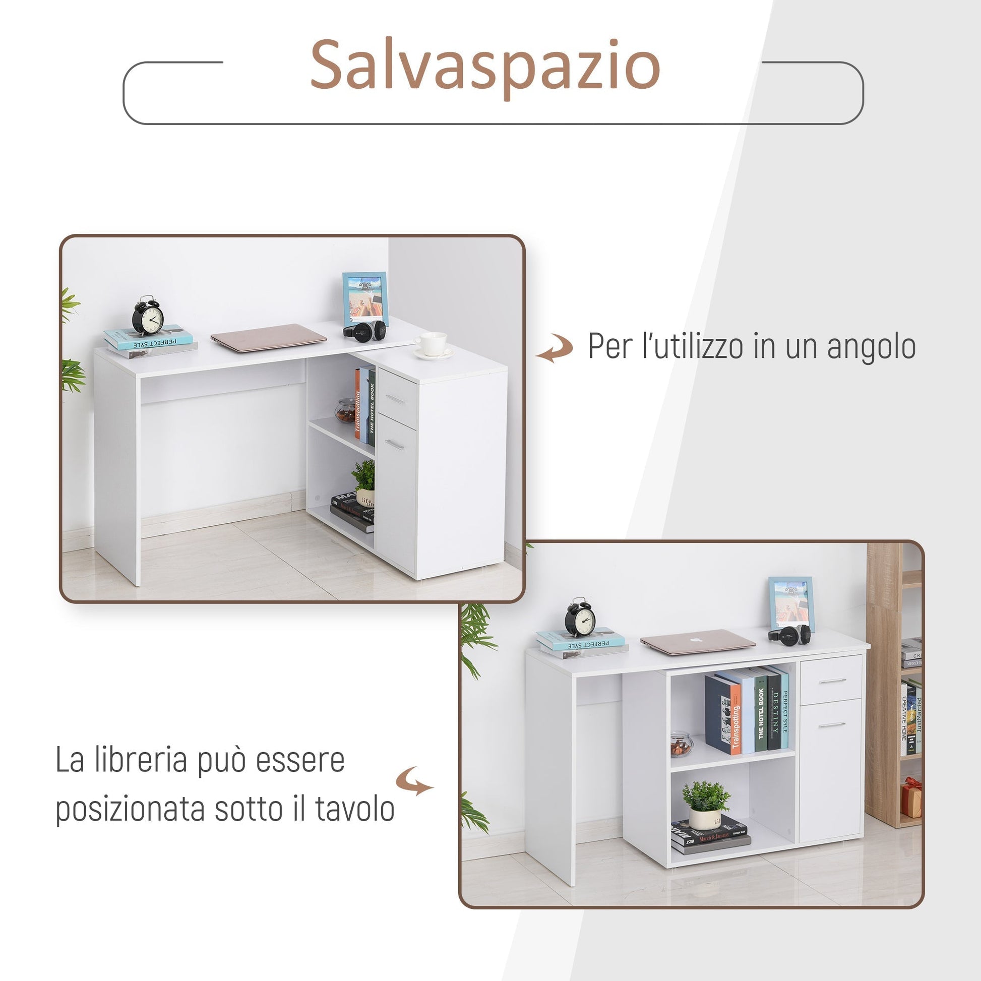 Transform your workspace in a snap with this Homcom corner desk! Constructed of chipboard panels with a scratch-resistant melamine surface, it's easy to clean and keeps your space looking pristine. Rotate the work surface and shelf 360° to find the perfect angle for your tasks.