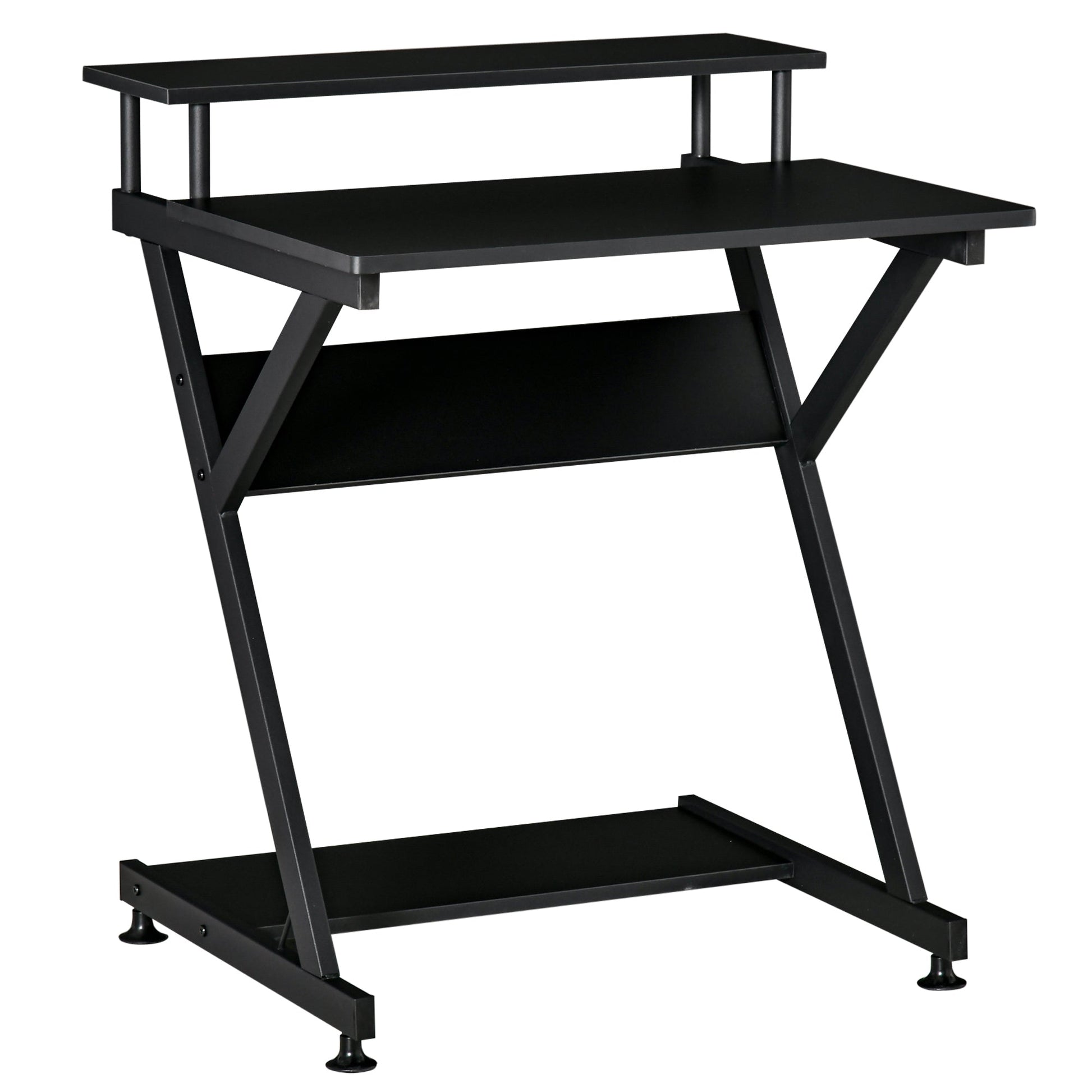 Table PC Room Road with raised monitor shelf, wooden office desk, 70x60x85.5cm - Black