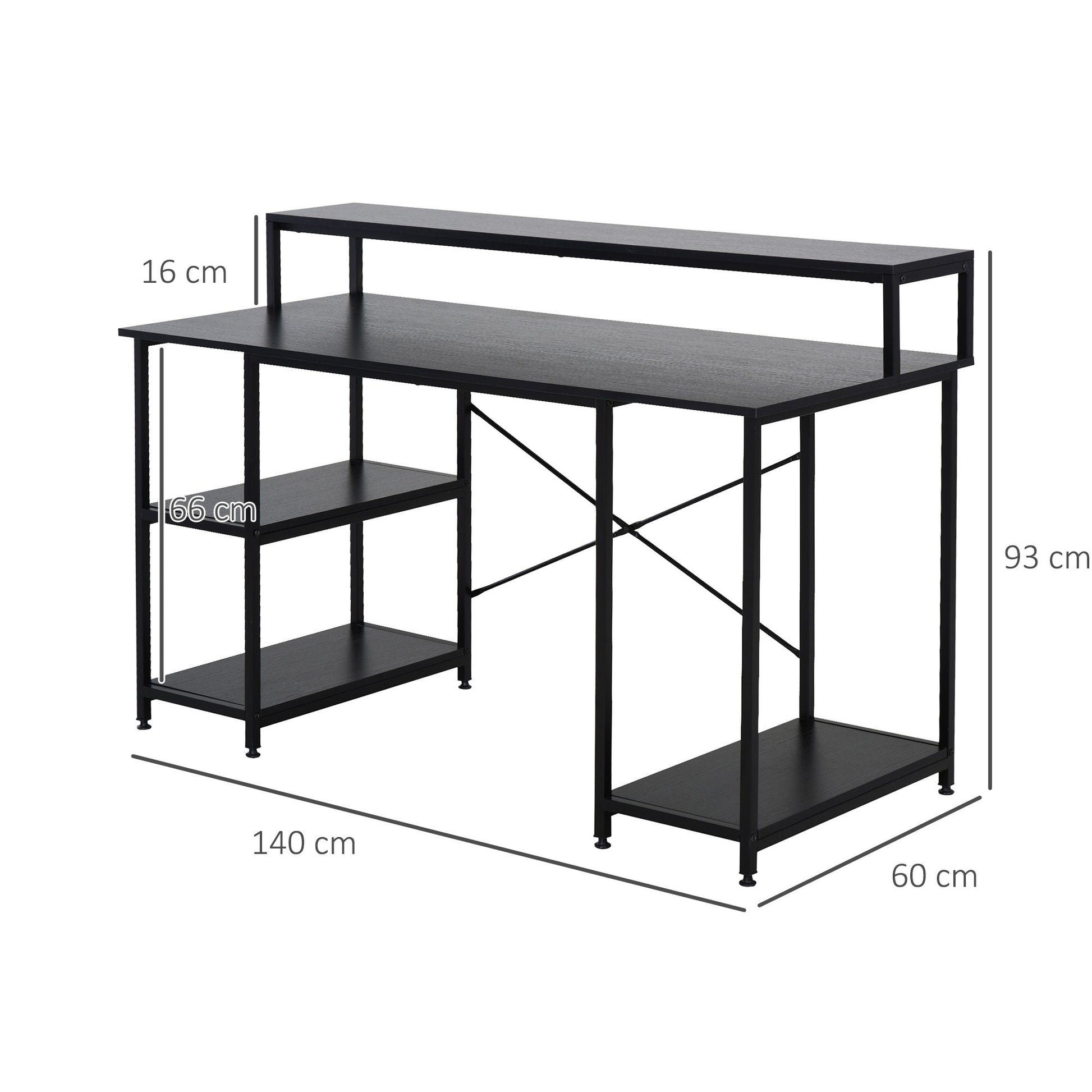 Computer Desk with Monitor and CPU Shelves, Office Desk for Home, Study and Work, Black, 140 x 60 x 93cm