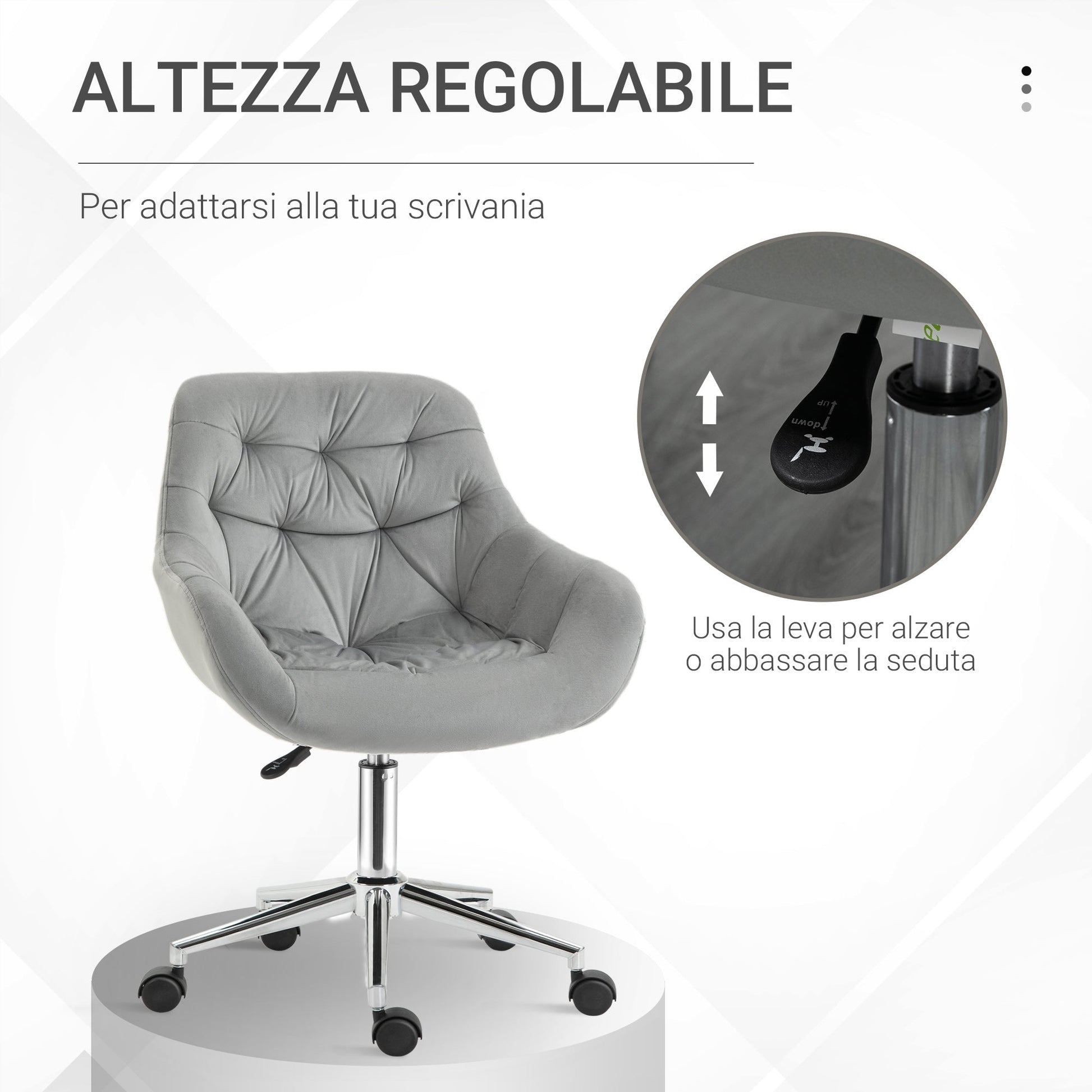- COMFORTABLE: The soft velvet-effect upholstery and thick padding make this office chair the perfect seat for working in comfort.