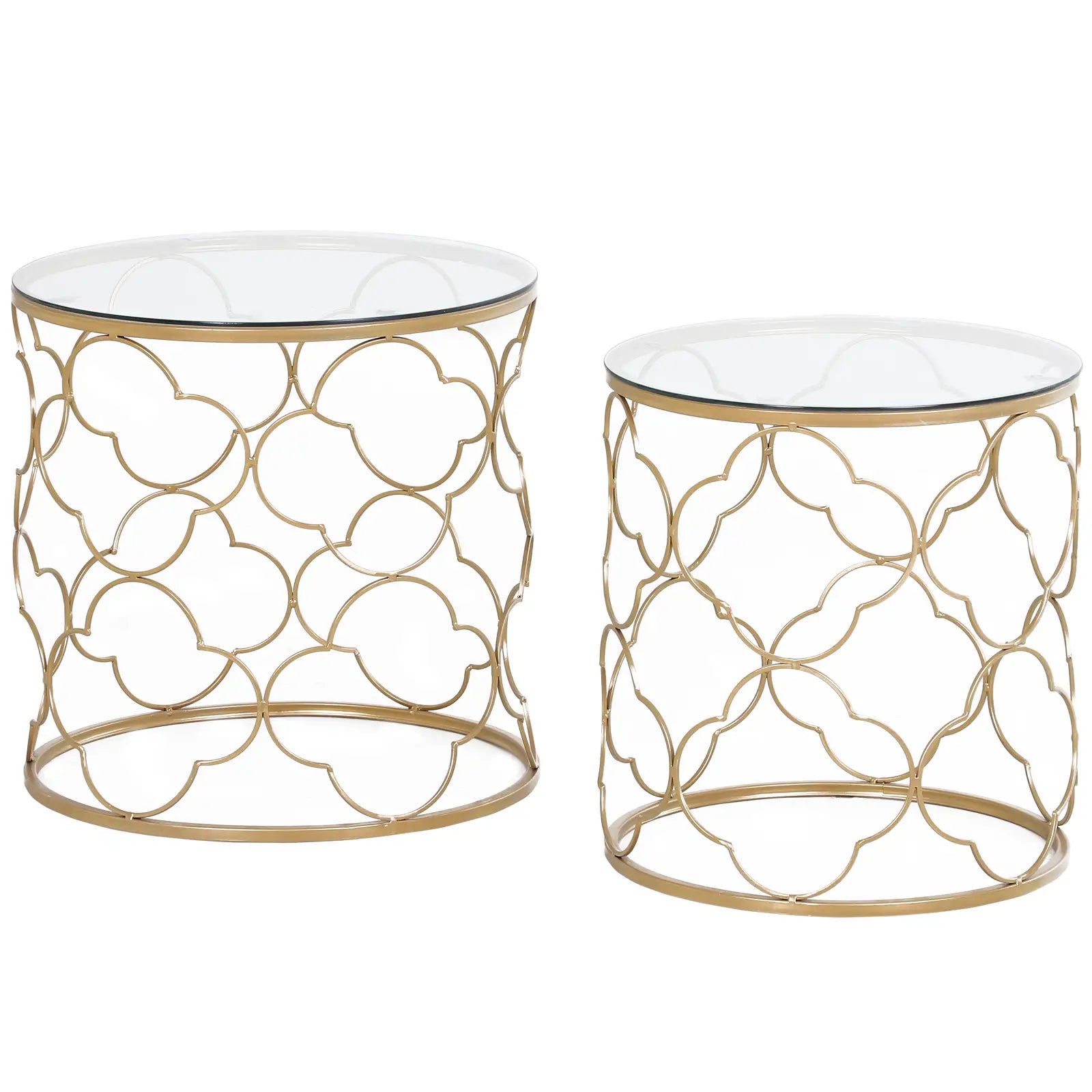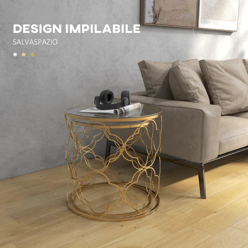 MYKONOS - Set of 2 Art Deco Metal Nesting Coffee Tables with Glass Top, Gold