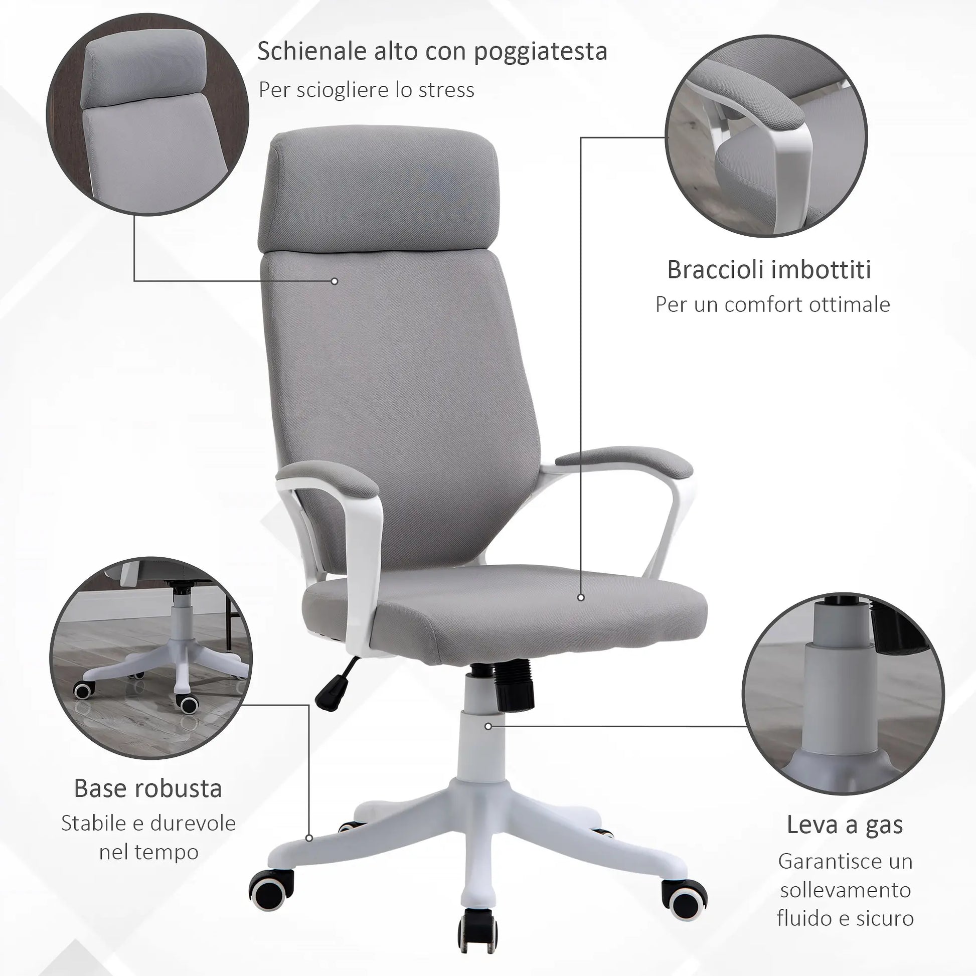 Swivel Office Chair with Headrest, Height-Adjustable Armchair with Rocking Function, 63x65x112-120cm, Light Grey