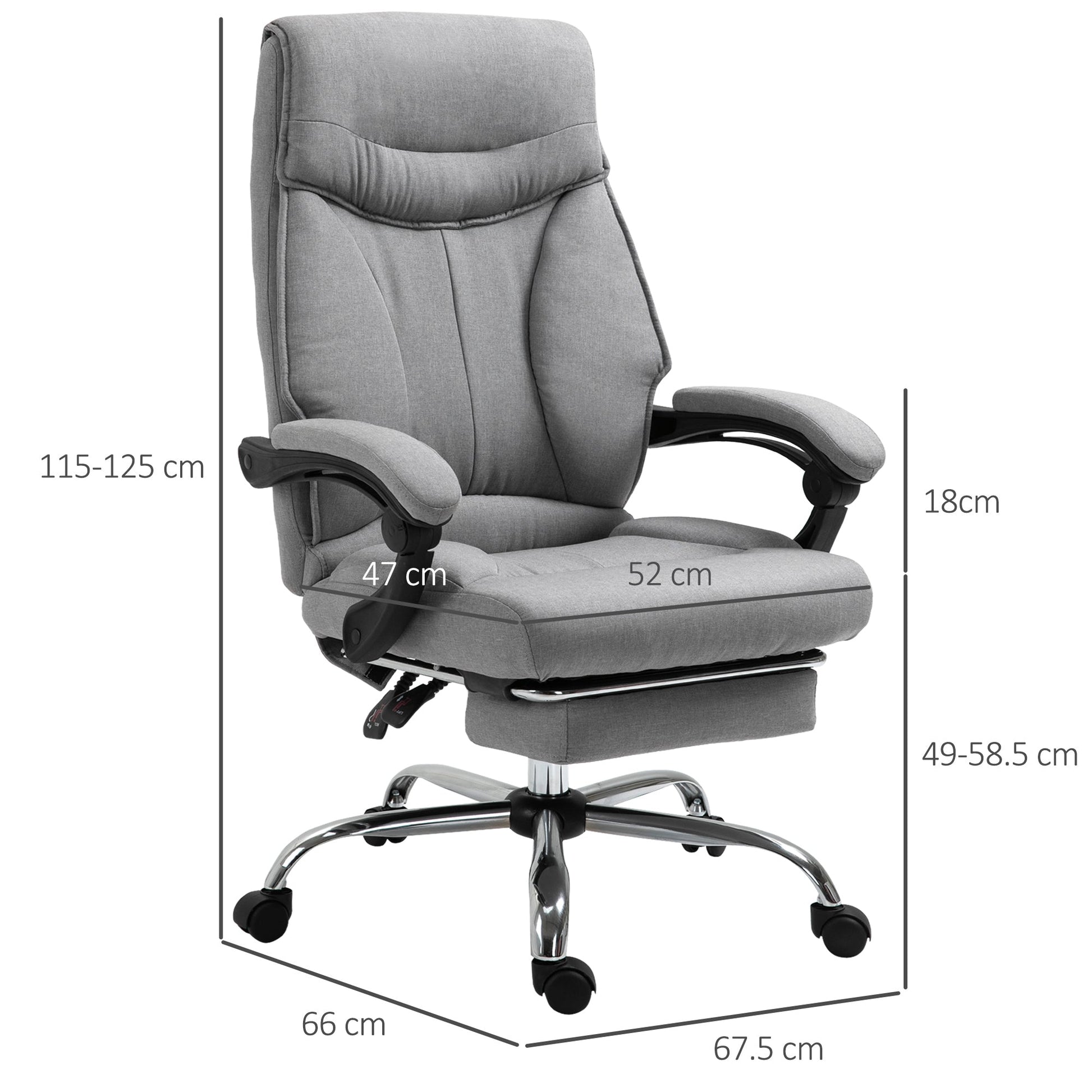 Ergonomic Swivel Office Chair, Desk Chair with Wheels, Retractable Footrest and 135° Reclining, Adjustable Height, Grey