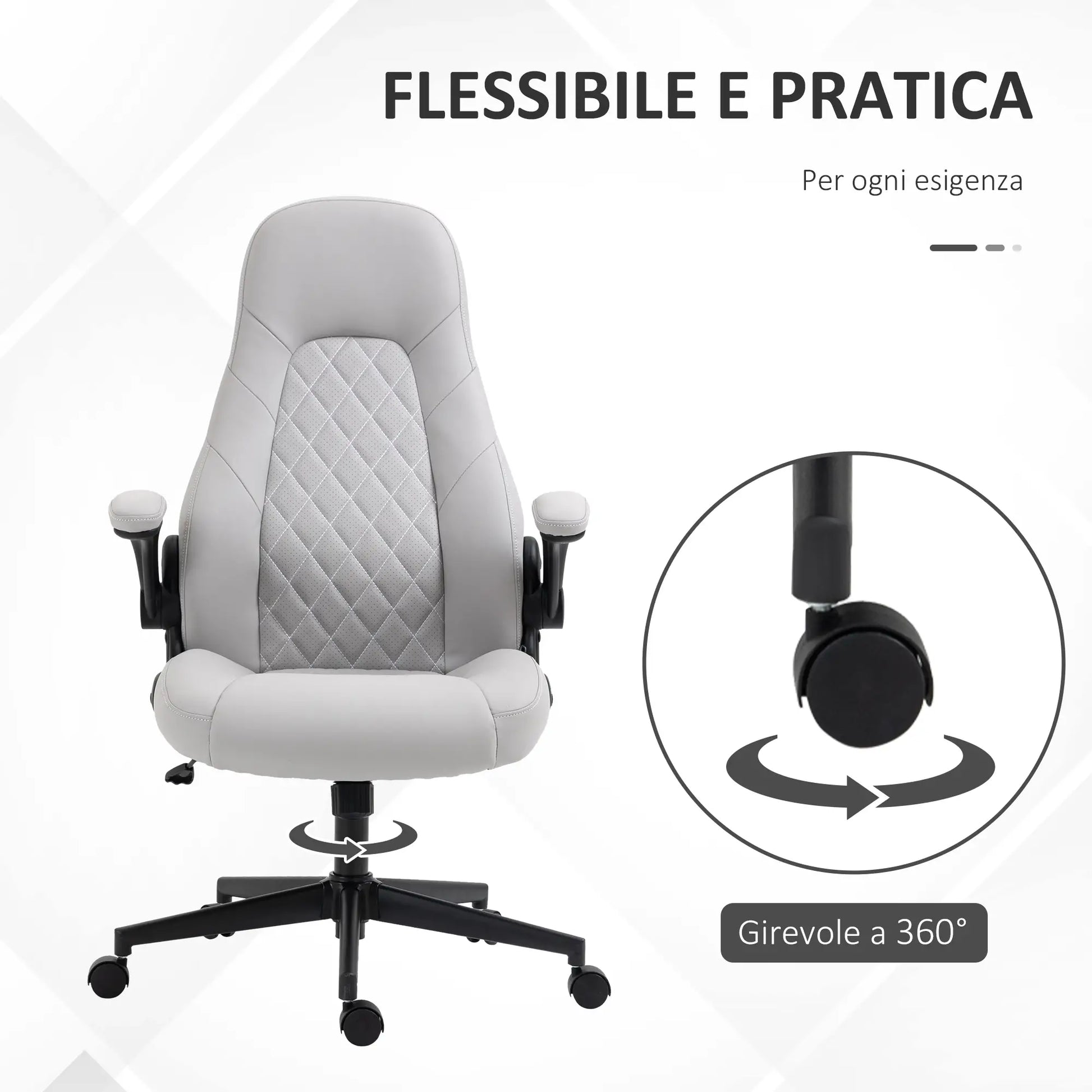 Ergonomic Office Chair with Folding Armrests and Adjustable Height, 67x70x112-122 cm, Grey