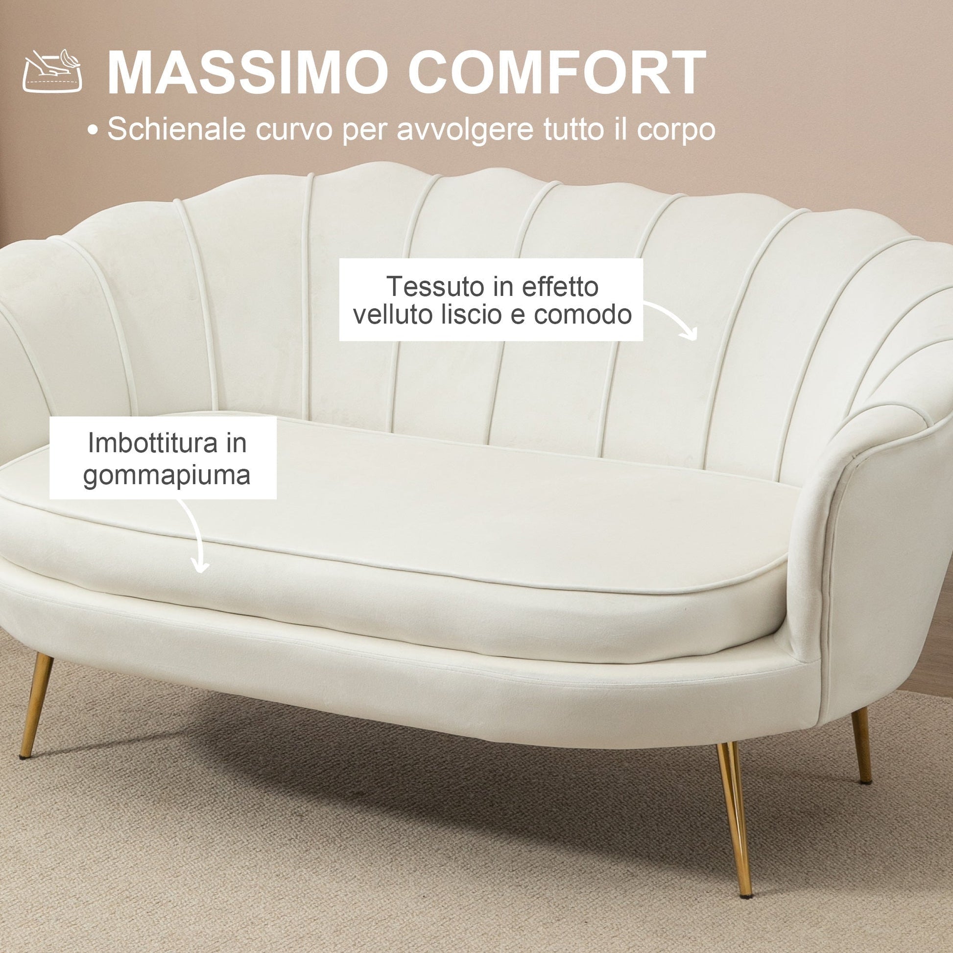 - ERGONOMIC AND COMFORTABLE: The seat and backrest are fully padded with foam rubber. The upholstery is in white velvet, soft to the touch and easy to clean.