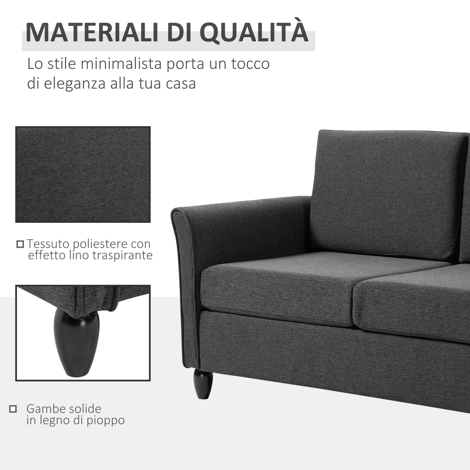 This two -seater minimal sofa signed Homcom will become your best friend to watch movies in the evening, to play video games or to read a good book! The sofa is compact and with extra wide seats to offer a lot of space where two people can sit comfortably. The solid wood structure with poplar legs guarantees stability and durability. The thick padding with linen cover will make you fall in love, as well as being simple to clean. An elegant addition for your living room, the bedroom, the study area or any other environment.