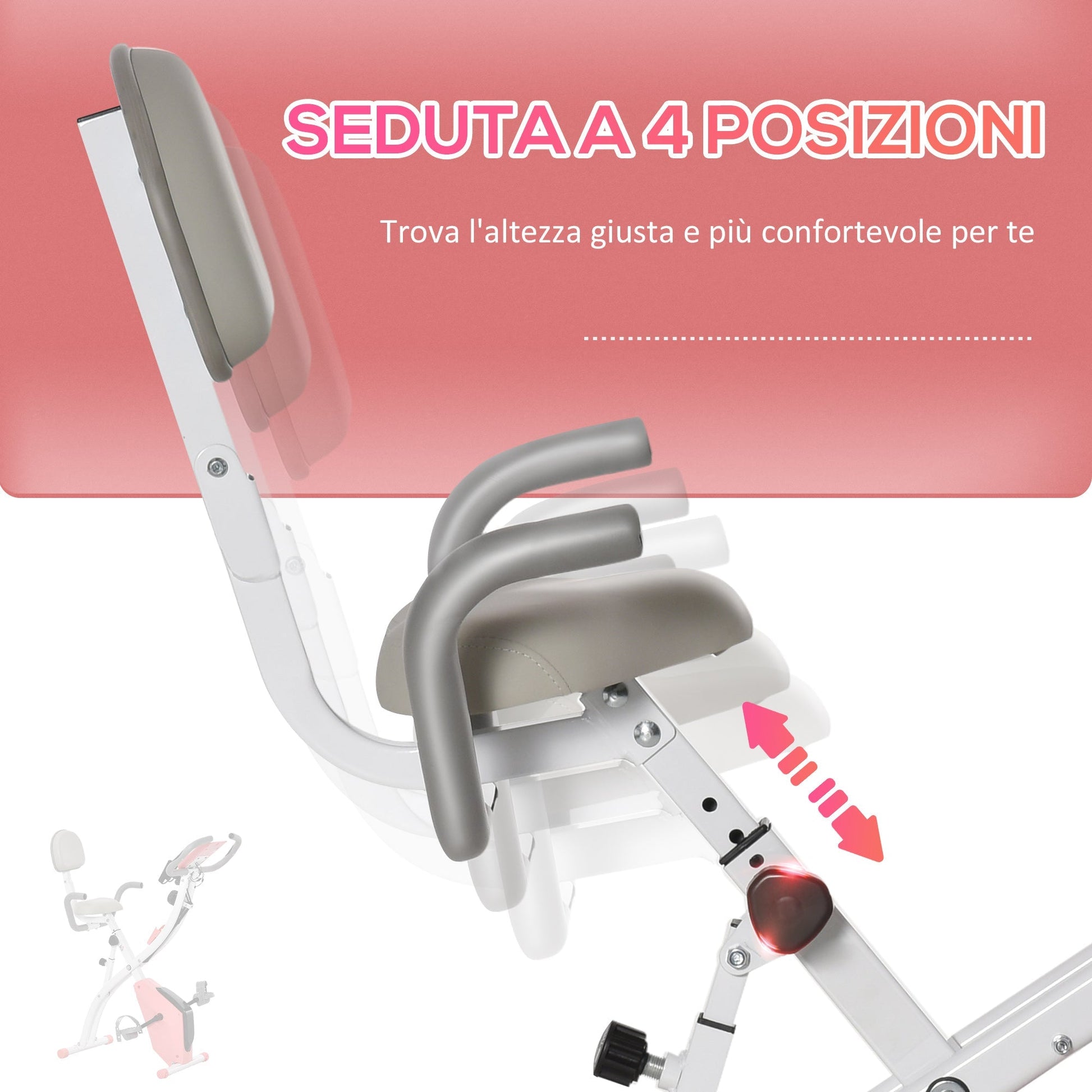 Folding Exercise Bike, 8 Level Adjustable Magnetic Resistance, Fitness Bike with Heart Rate Sensor, Arm Bands, LCD Screen, 2.5kg Flywheel, Pink