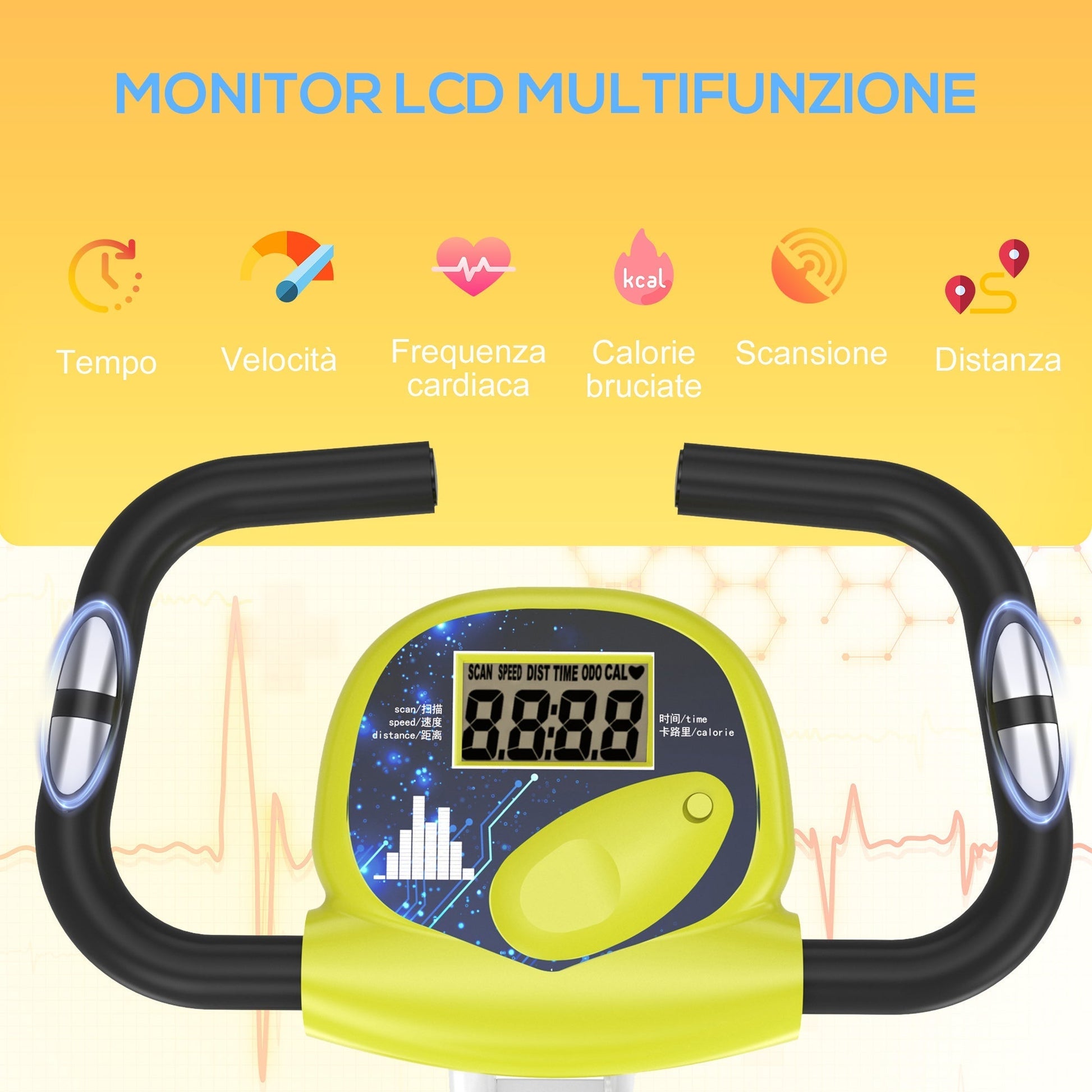 Foldable Fitness Bike Steel with Adjustable Height, Spinning Bike 8-Level Magnetic Resistance, LCD Screen, Yellow, 43x97x109cm