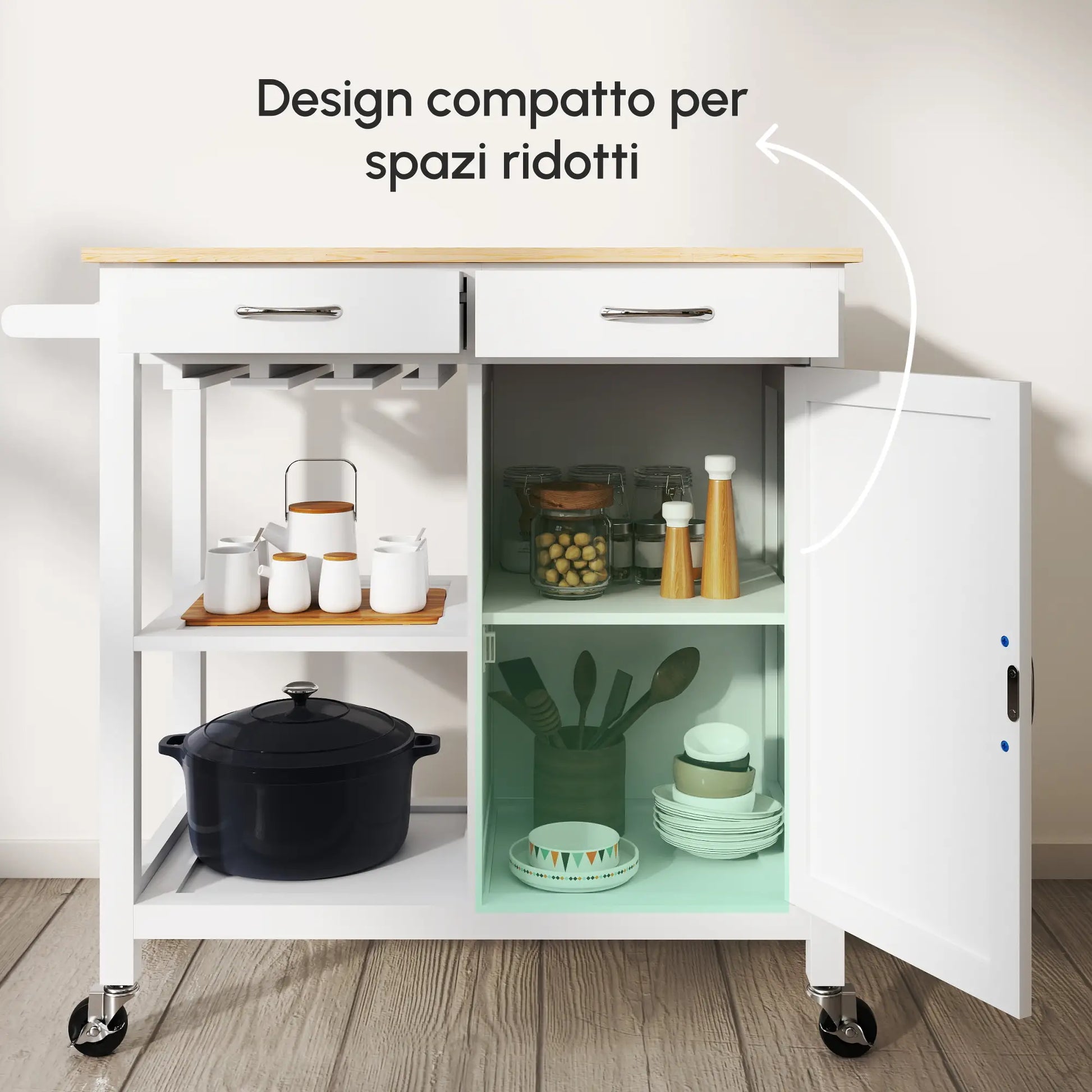 itchen Trolley with Drawers and Wheels in Wood Space Saving
