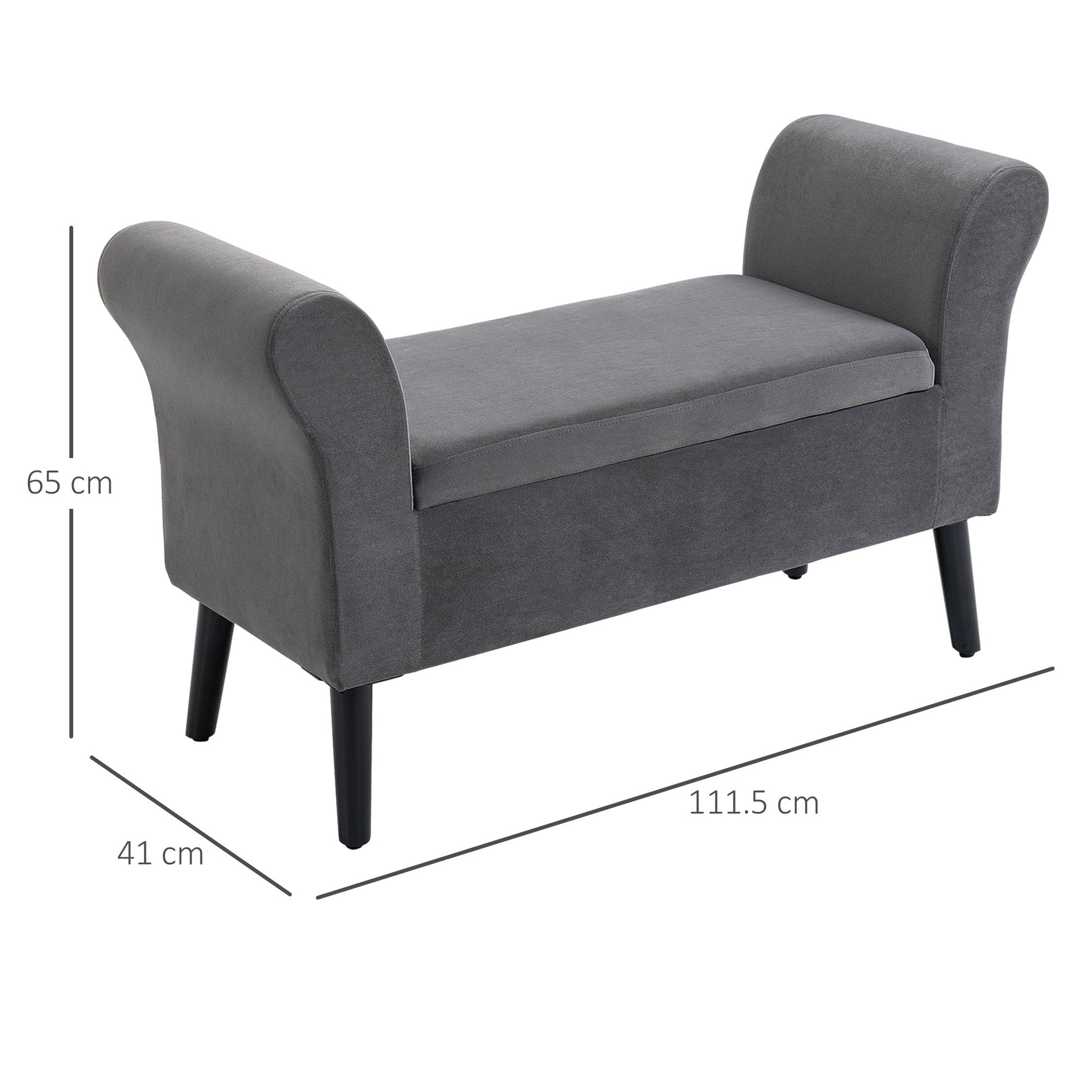 Velvet Fabric Upholstered Storage Bench for Bedroom with Armrests, 111.5x41x65cm - Grey