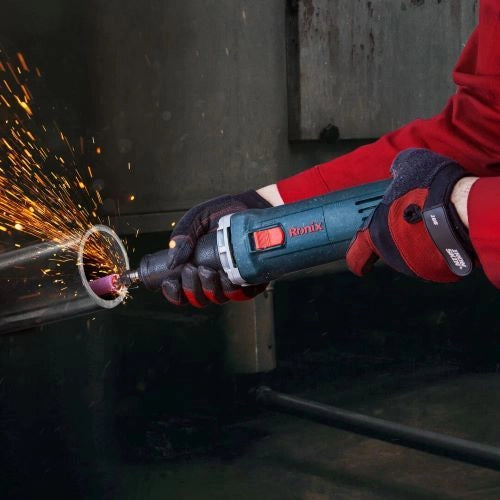 The Ronix 3302 long-neck die grinder is supplied in a Ronix-deigned color box and includes two spanners.