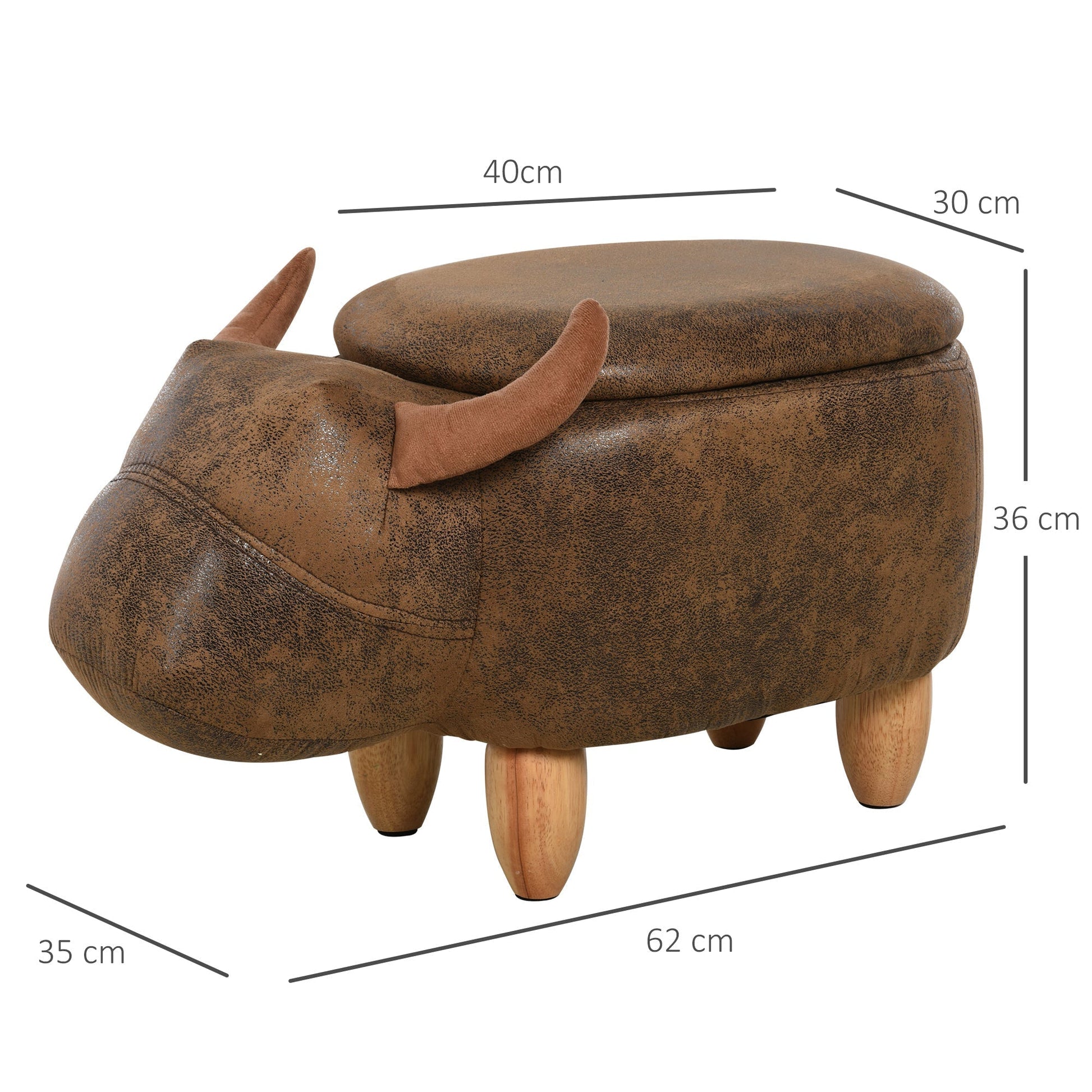 Buffalo Shaped Storage Ottoman, Modern Living Room Ottoman, Footstool, Wooden Frame, Padded Seat, 62x35x36cm, Brown