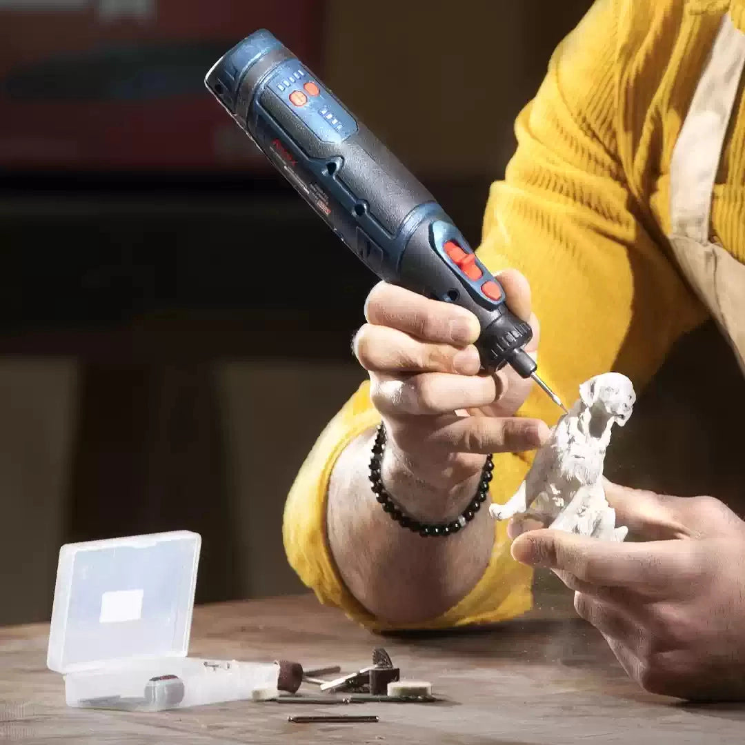 Includes many different rotary tool accessories for sanding, cutting, grinding, carving, polishing and cleaning solutions