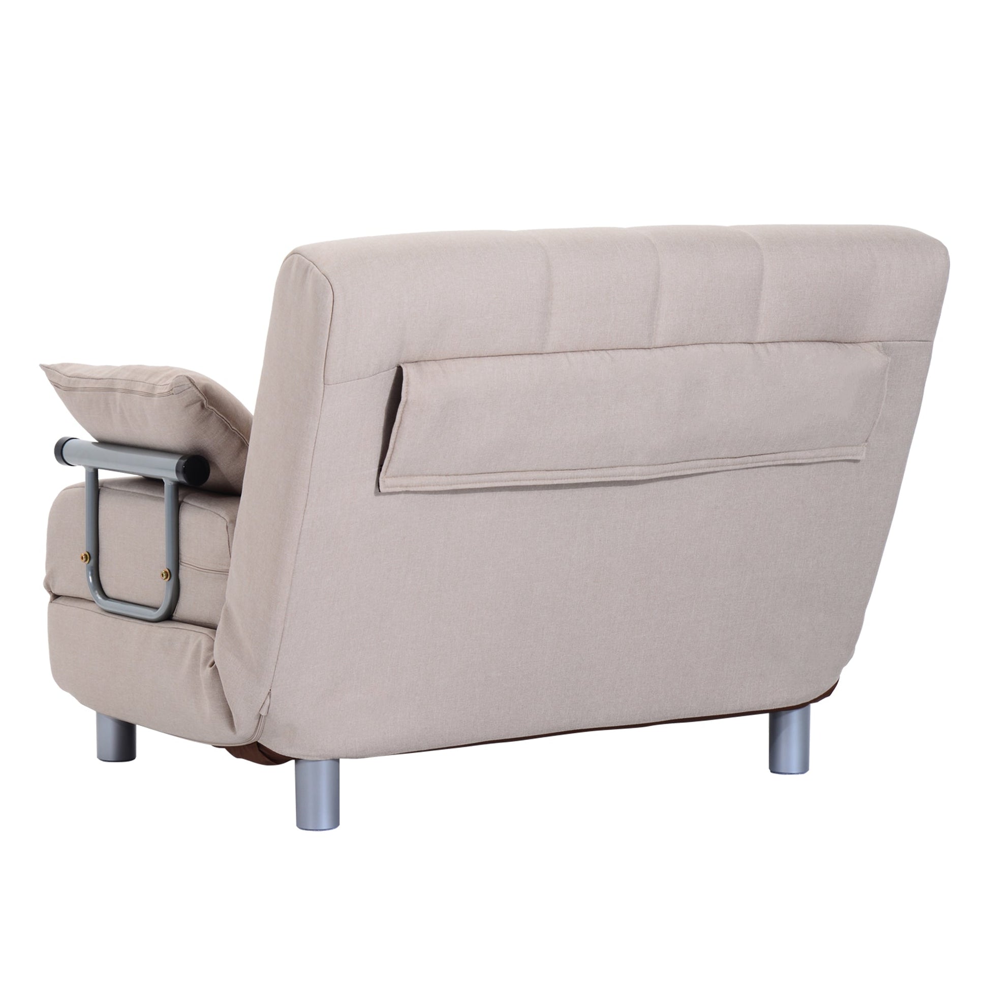 3 in 1, 2 Seater Sofa Bed Convertible to Recliner with Adjustable Backrest and 4 Padded Cushions, 102x82x81 cm, Beige