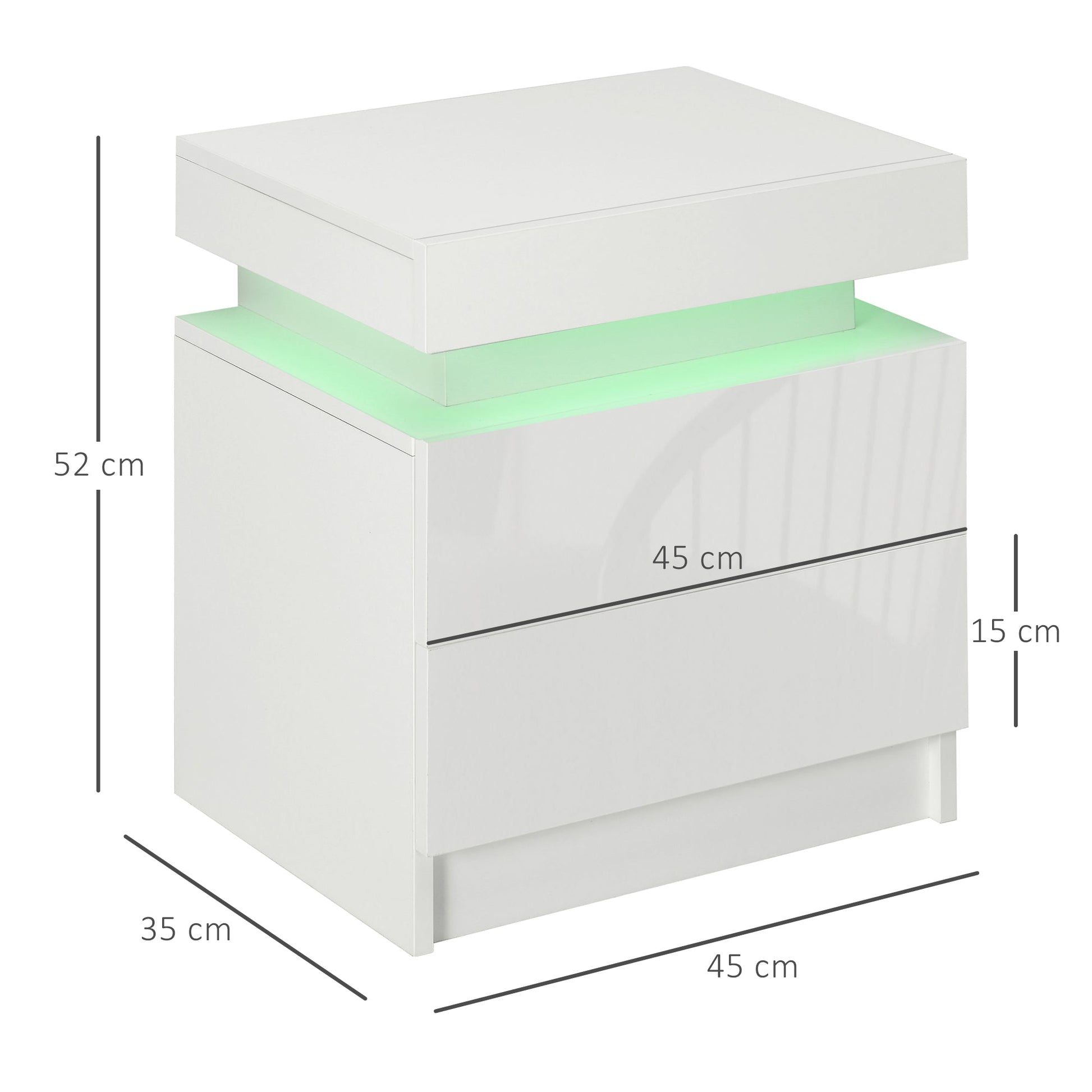 Bedside Table with Built-in RGB LED Light with 2 Drawers, 4 Light Modes and 16 Colors, Chipboard, 45x35x52cm, White