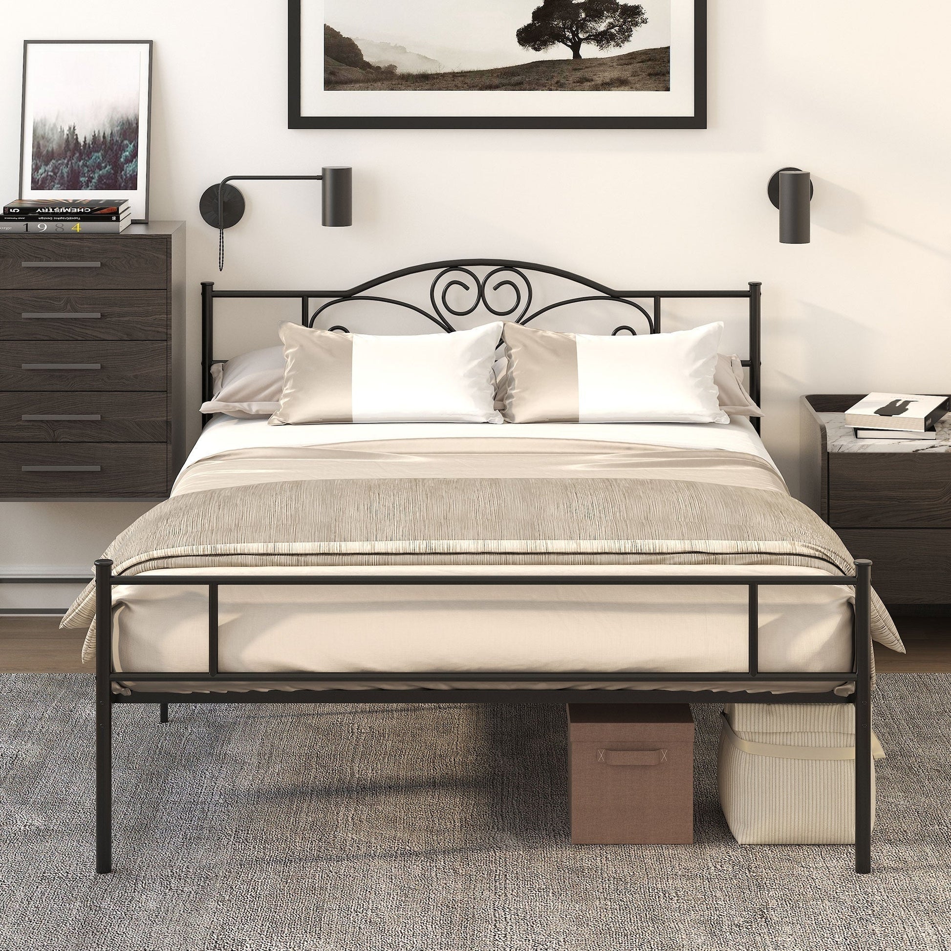 - SILENT: The sturdy steel legs provide additional stability. The bed frame and steel slats do not creak, ensuring you a quiet and quality rest. The headboard rests against the wall and prevents mattresses from sliding.