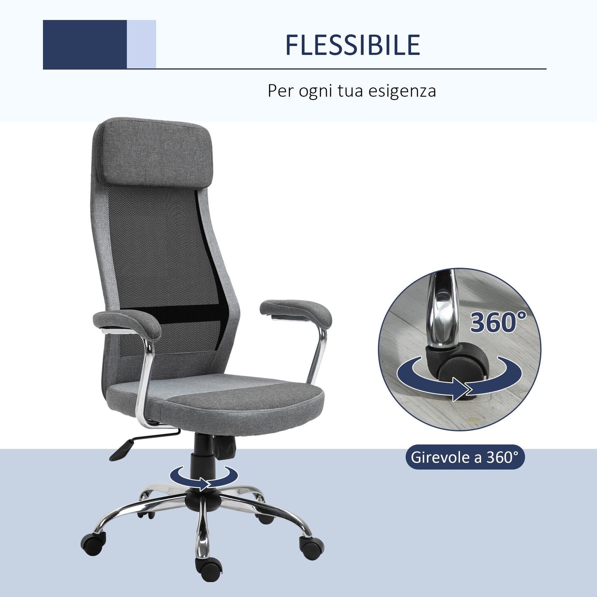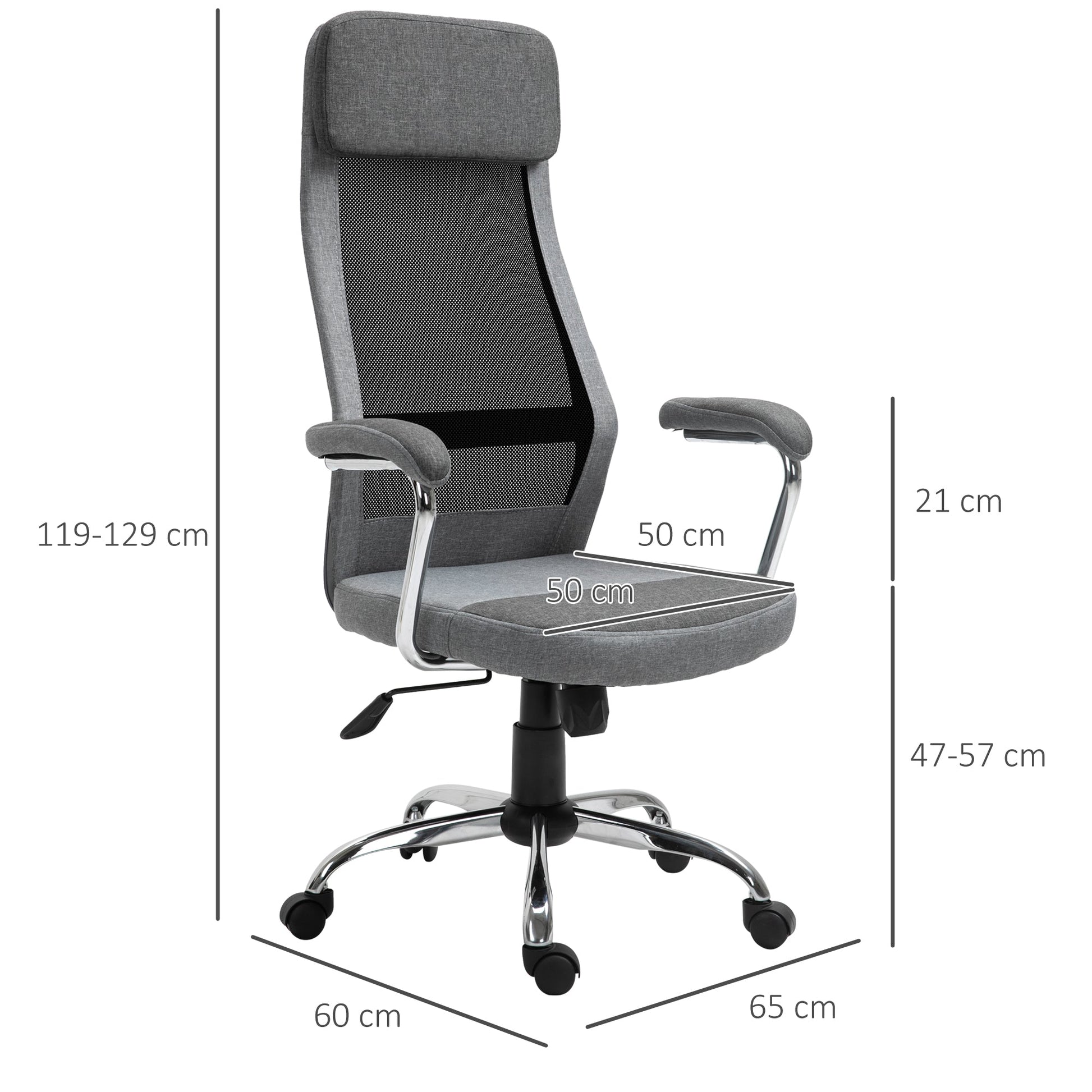 Ergonomic Swivel Office Chair, Adjustable Height and Rocking, Mesh Fabric Armchair 65x67x119-129cm Grey