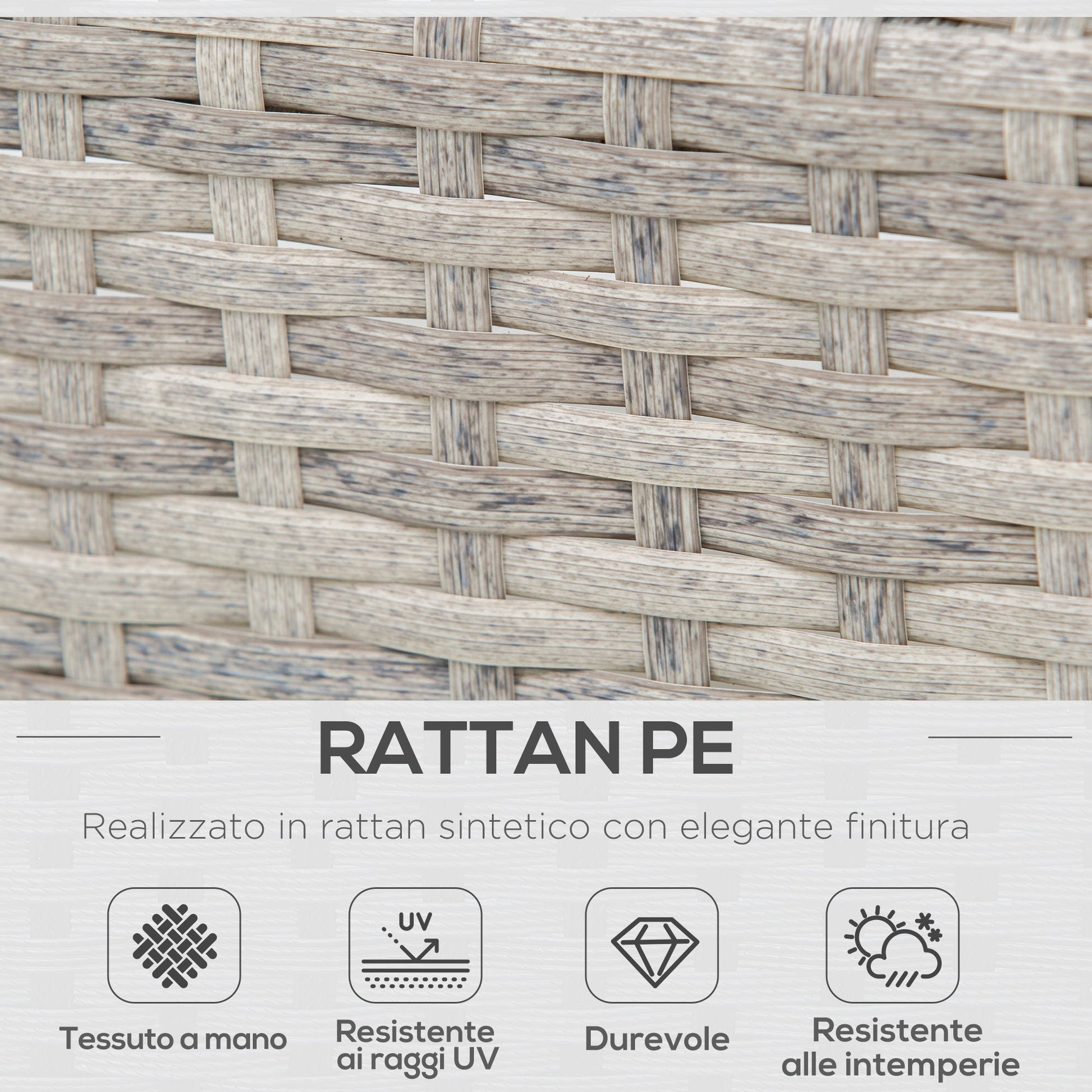 - RATTAN: The frame of the garden set is made of powder-coated steel and synthetic rattan. Two waterproof materials, designed for outdoor use.