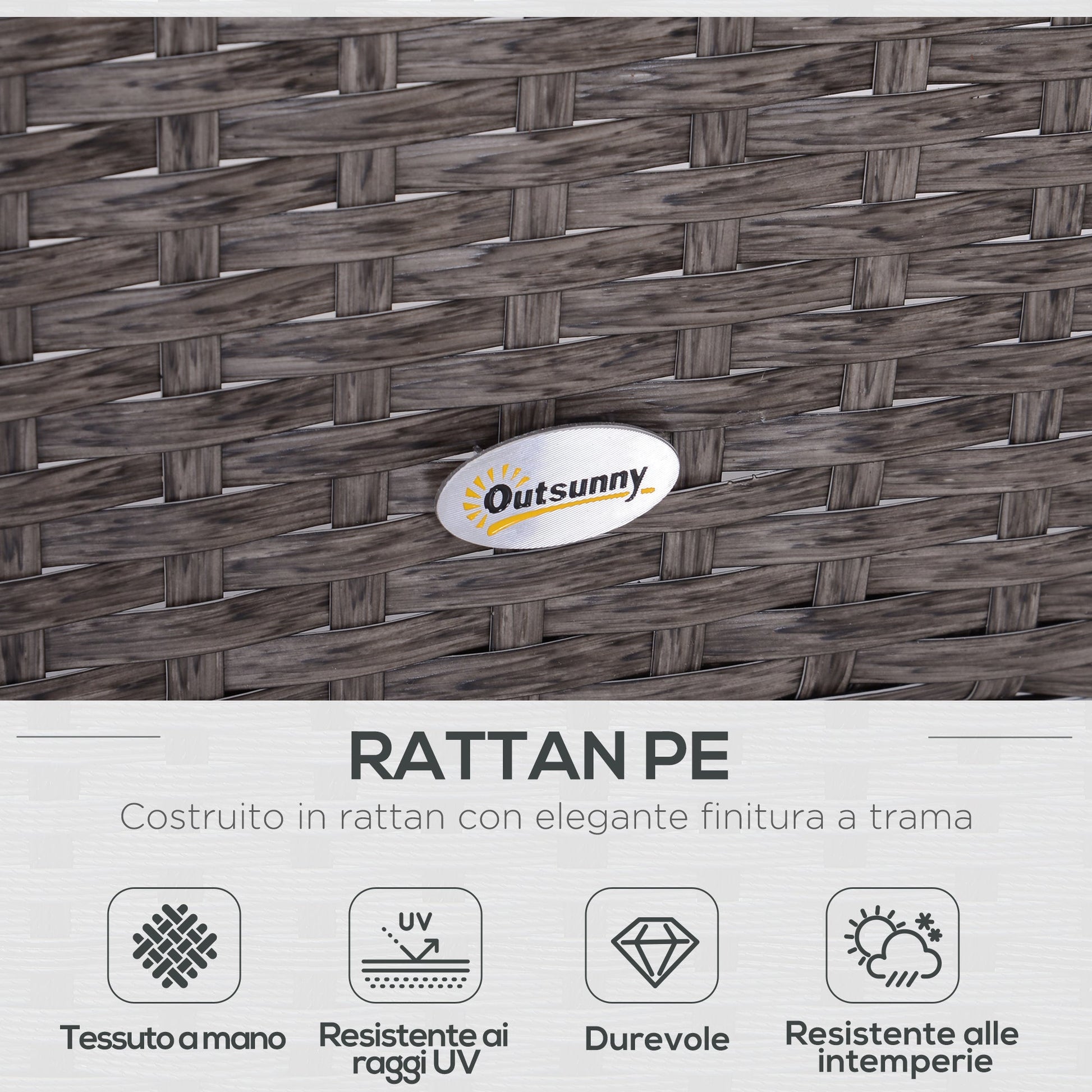 - STABLE AND STURDY: Each piece of furniture in the set is constructed with a steel frame covered in hand-woven synthetic rattan. This UV-resistant and waterproof material is designed to last a long time.