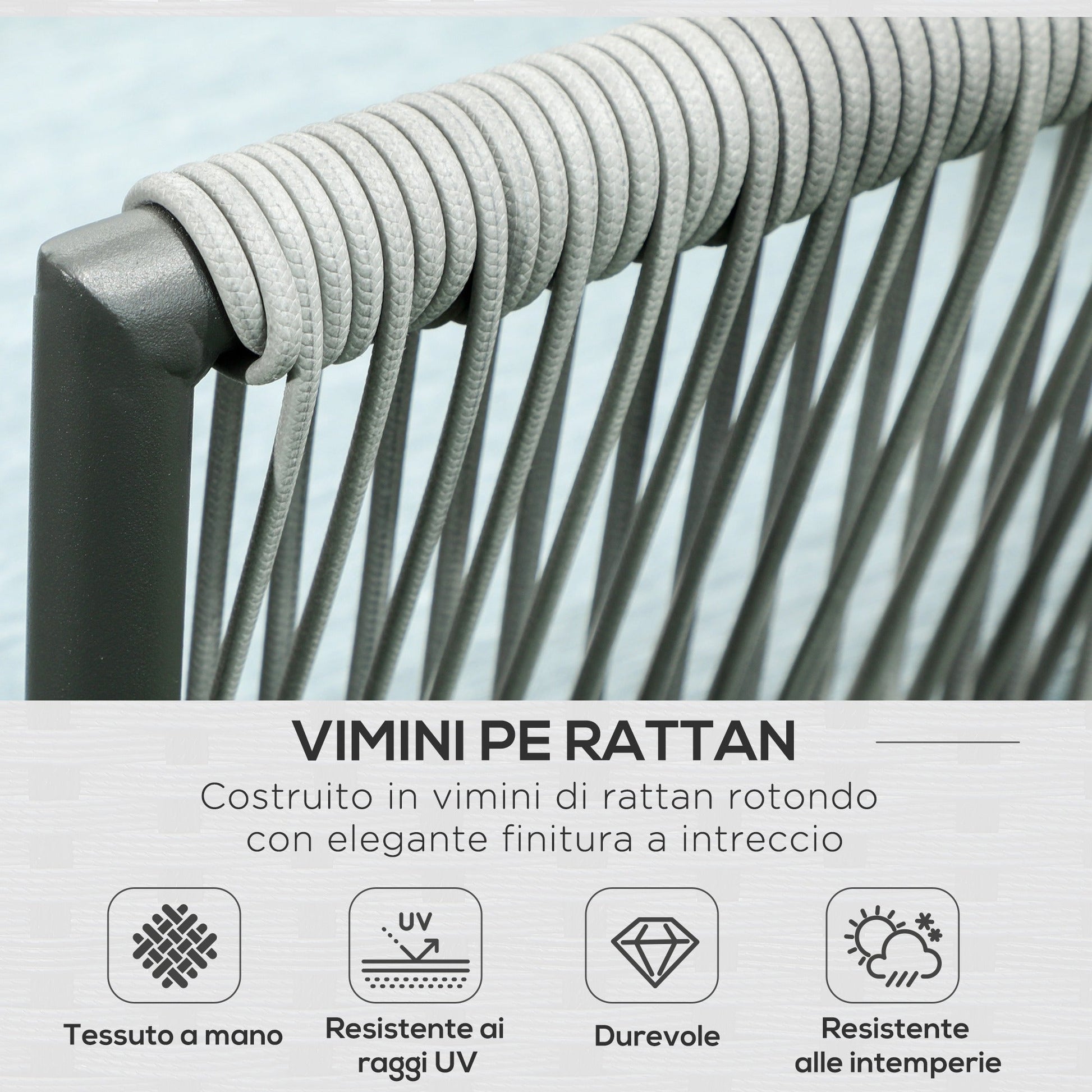 - • Lightweight aluminum and PE rattan outdoor set