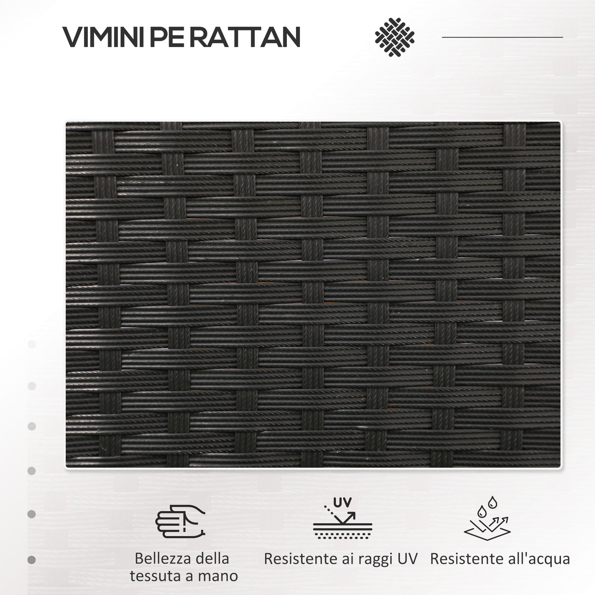 - • Material: PE rattan, steel, glass, polyester
