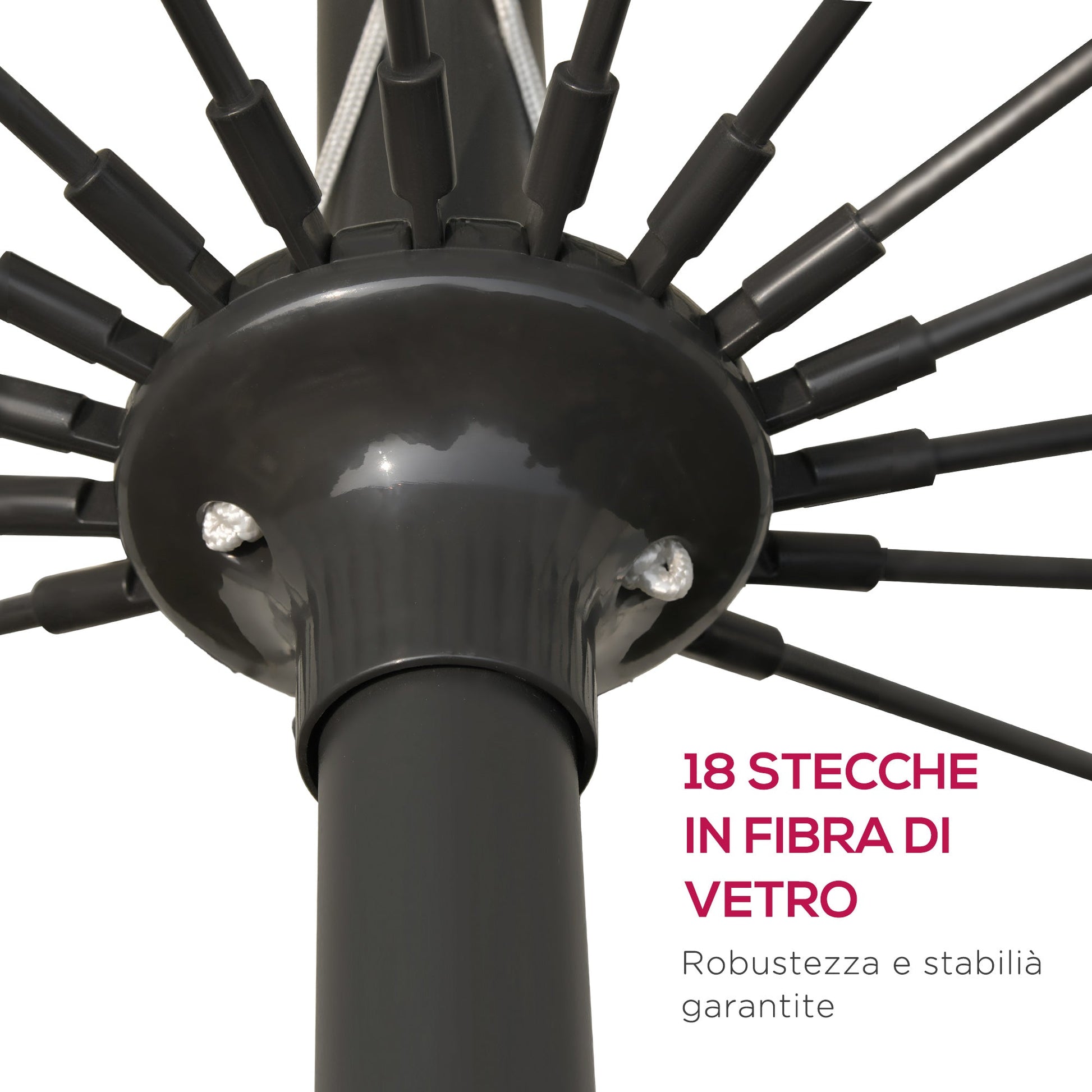 - STURDY CONSTRUCTION: The powder-coated metal pole and 18 fiberglass ribs make this outdoor umbrella extremely sturdy and durable over time.