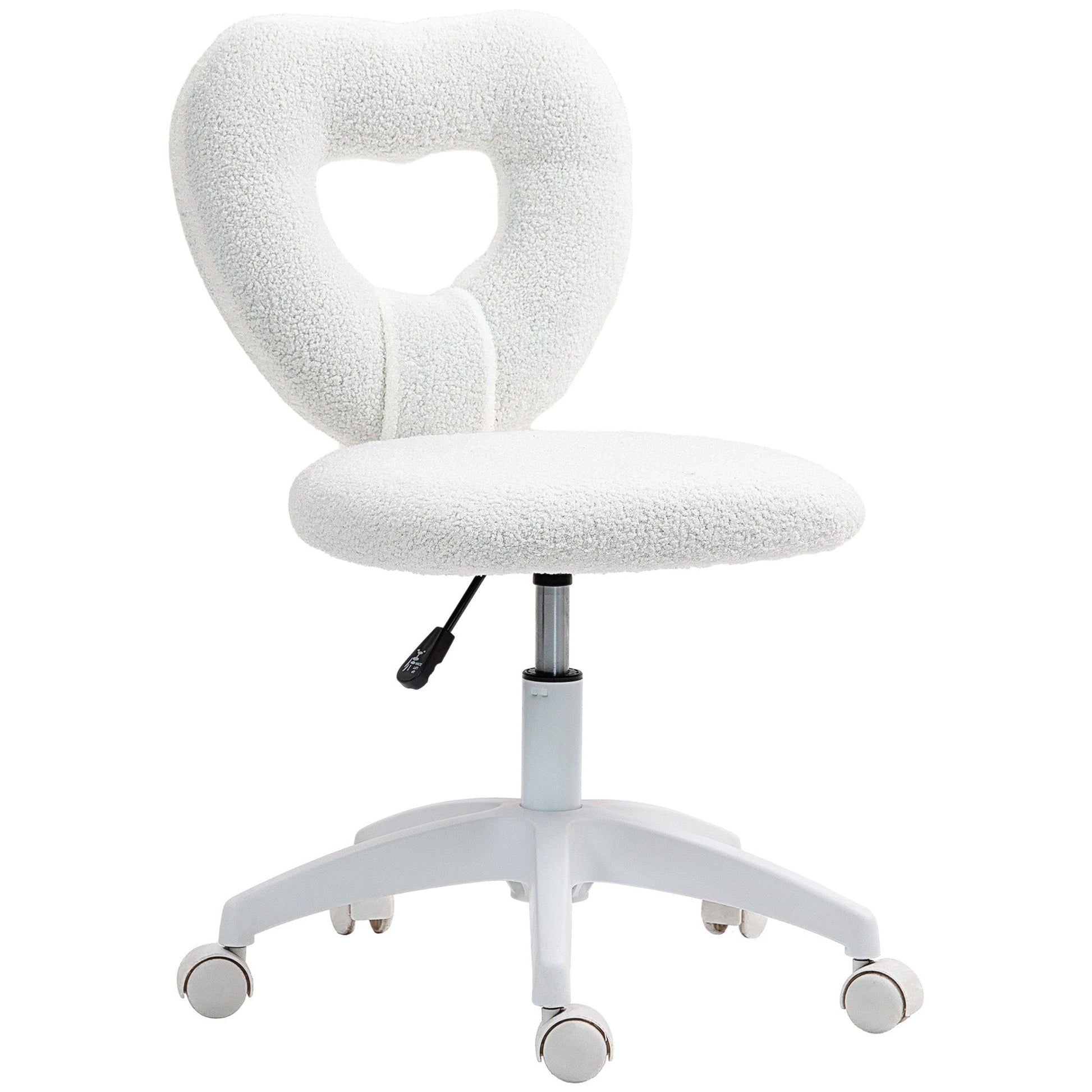 Padded Office Chair with Heart-Shaped Backrest and Wheels, in Teddy Velvet and Plastic, 45x56x78-88 cm, White