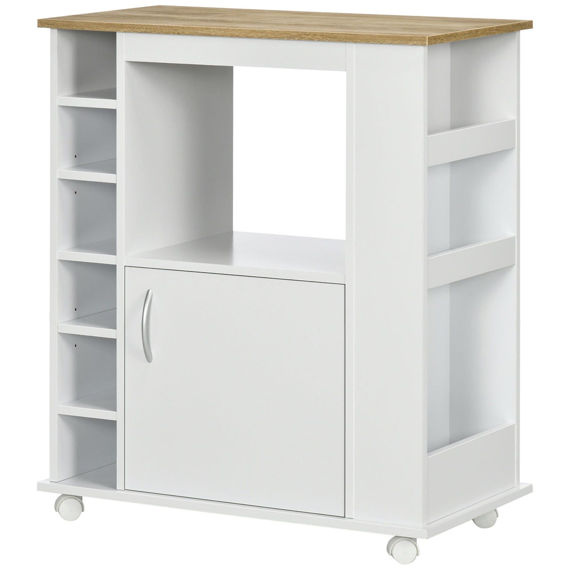 Kitchen Trolley with Cabinet and Adjustable Shelves, Swivel Wheels and Brake, 75x39.5x88 cm, White