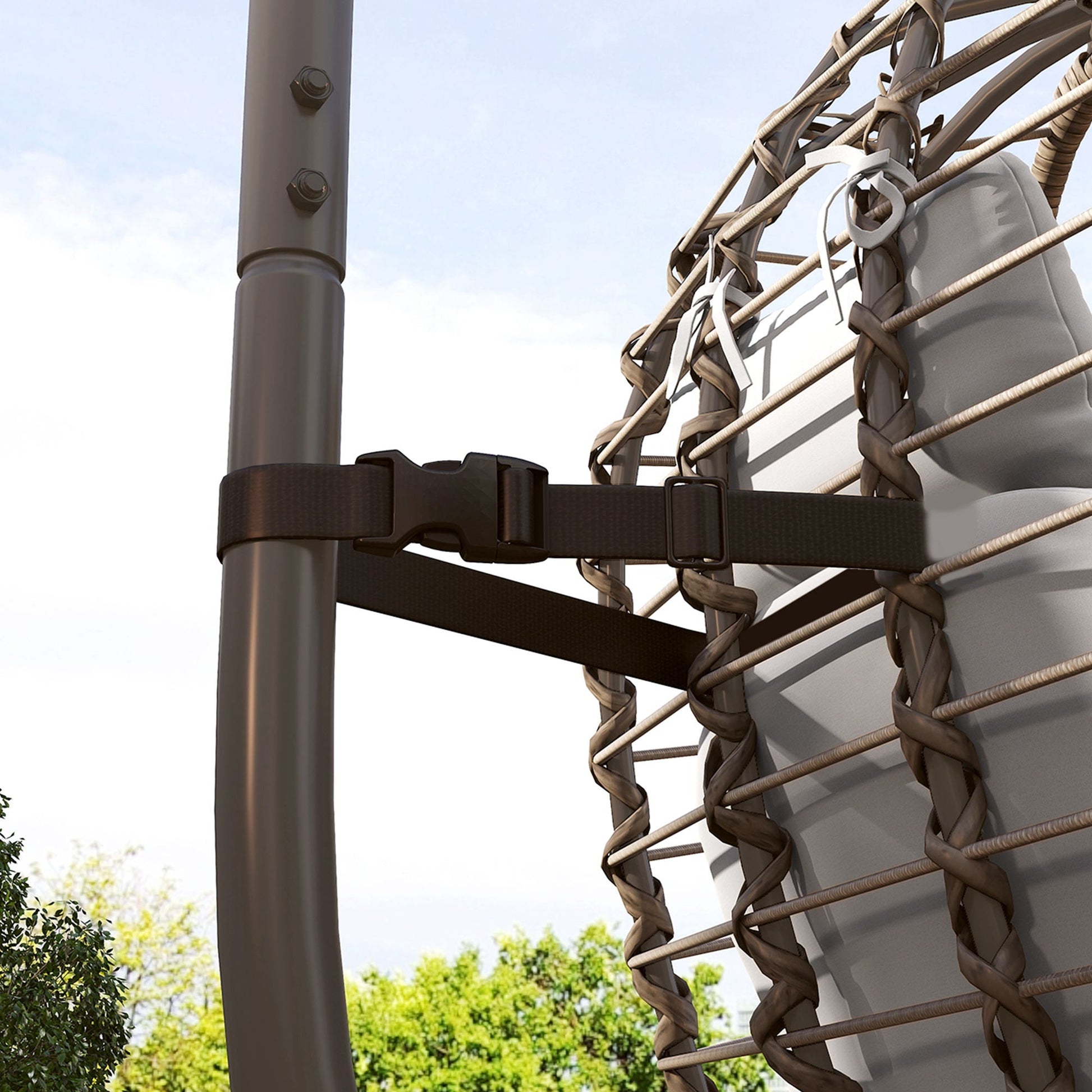 - • The chic rope weave on the back of the egg chair is weatherproof and enhances the look of your garden.