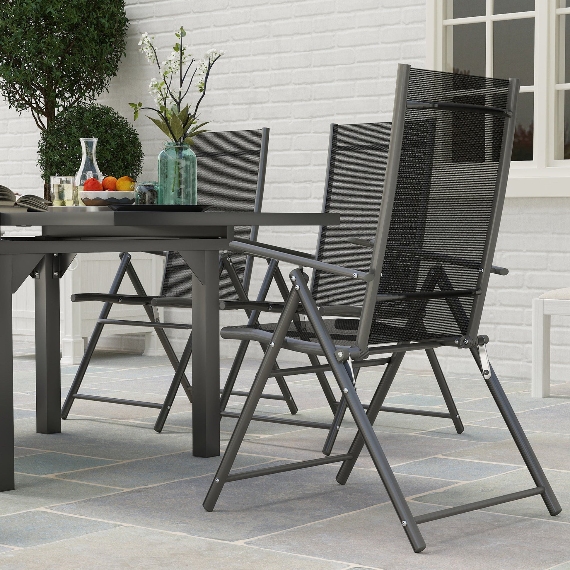 - STRONG AND COMFORTABLE CHAIRS: Each garden chair holds up to 120 kg. The breathable Textiline fabric helps keep you cool on hot days, while the high backrest and armrests provide superior comfort.