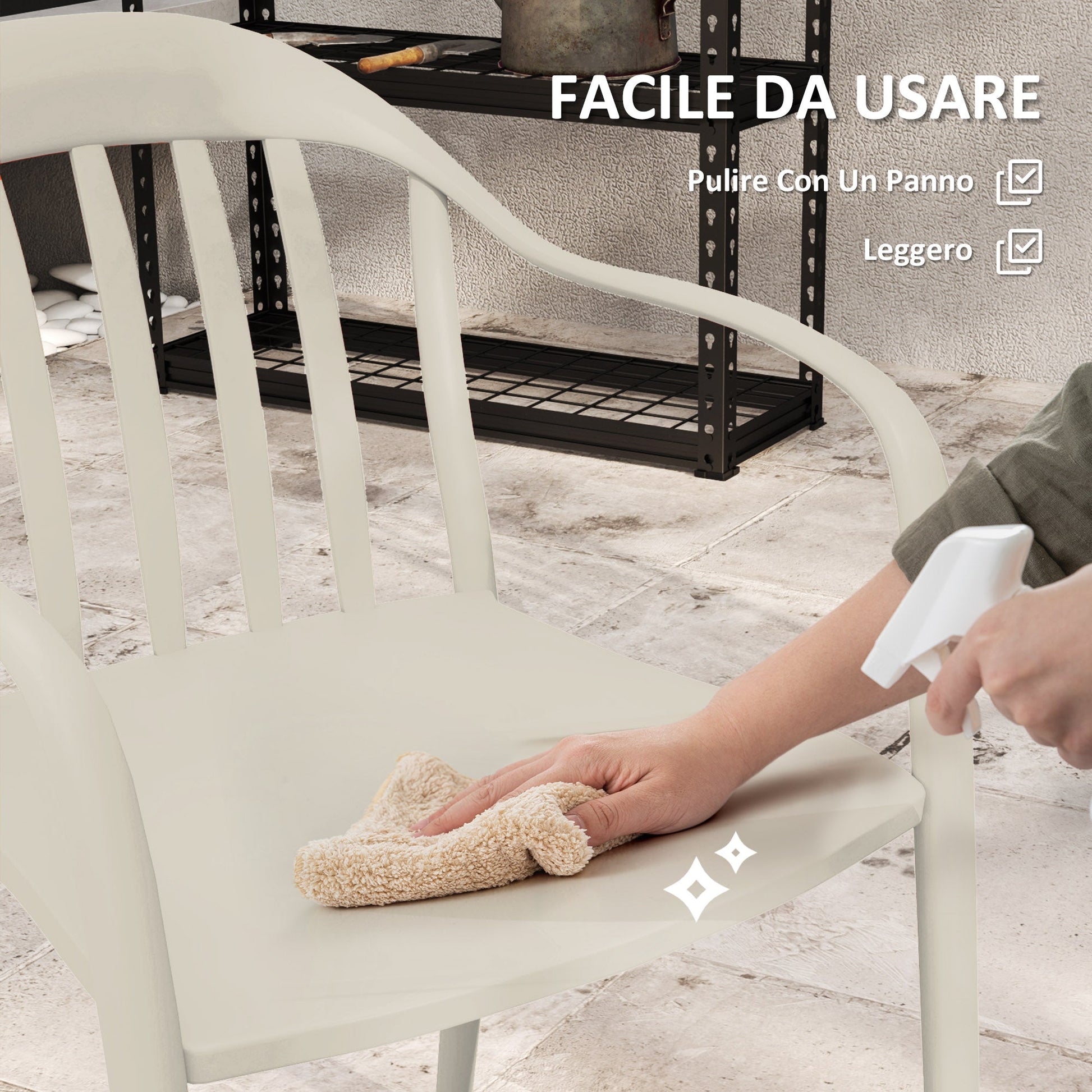 et of 4 Stackable Garden Chairs in PP with High Backrest and Armrests, 57x54x78 cm, White