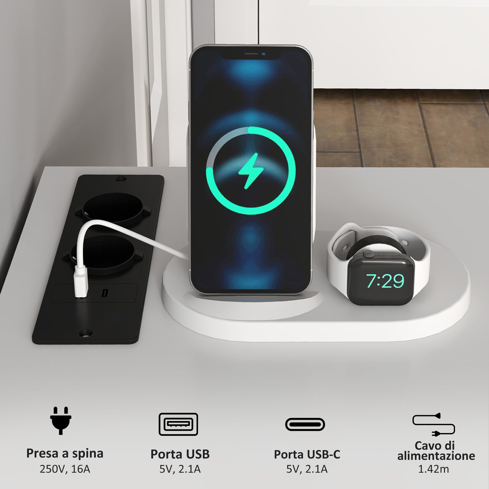 - • PC desk with integrated charging station with electrical socket, USB port and USB-C port