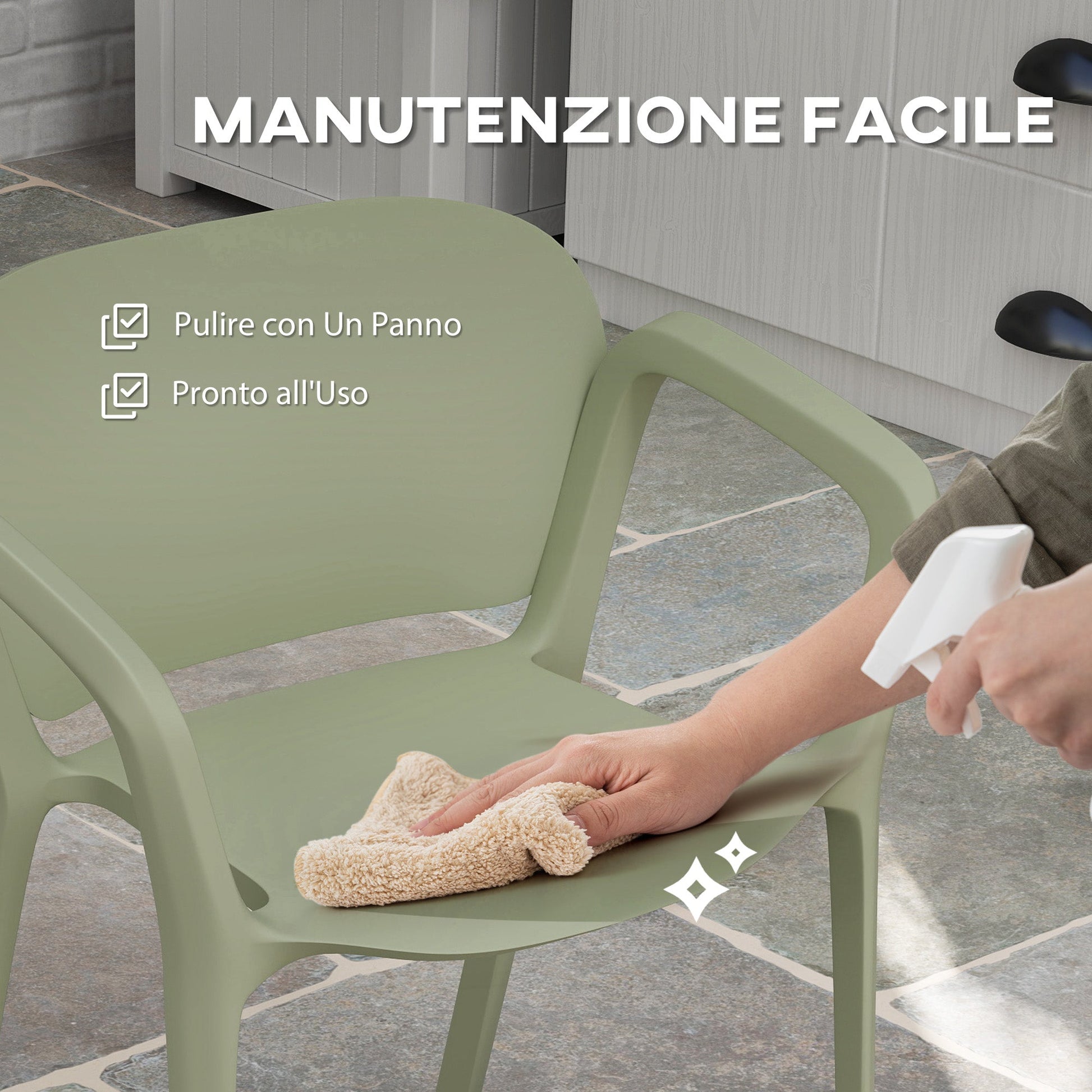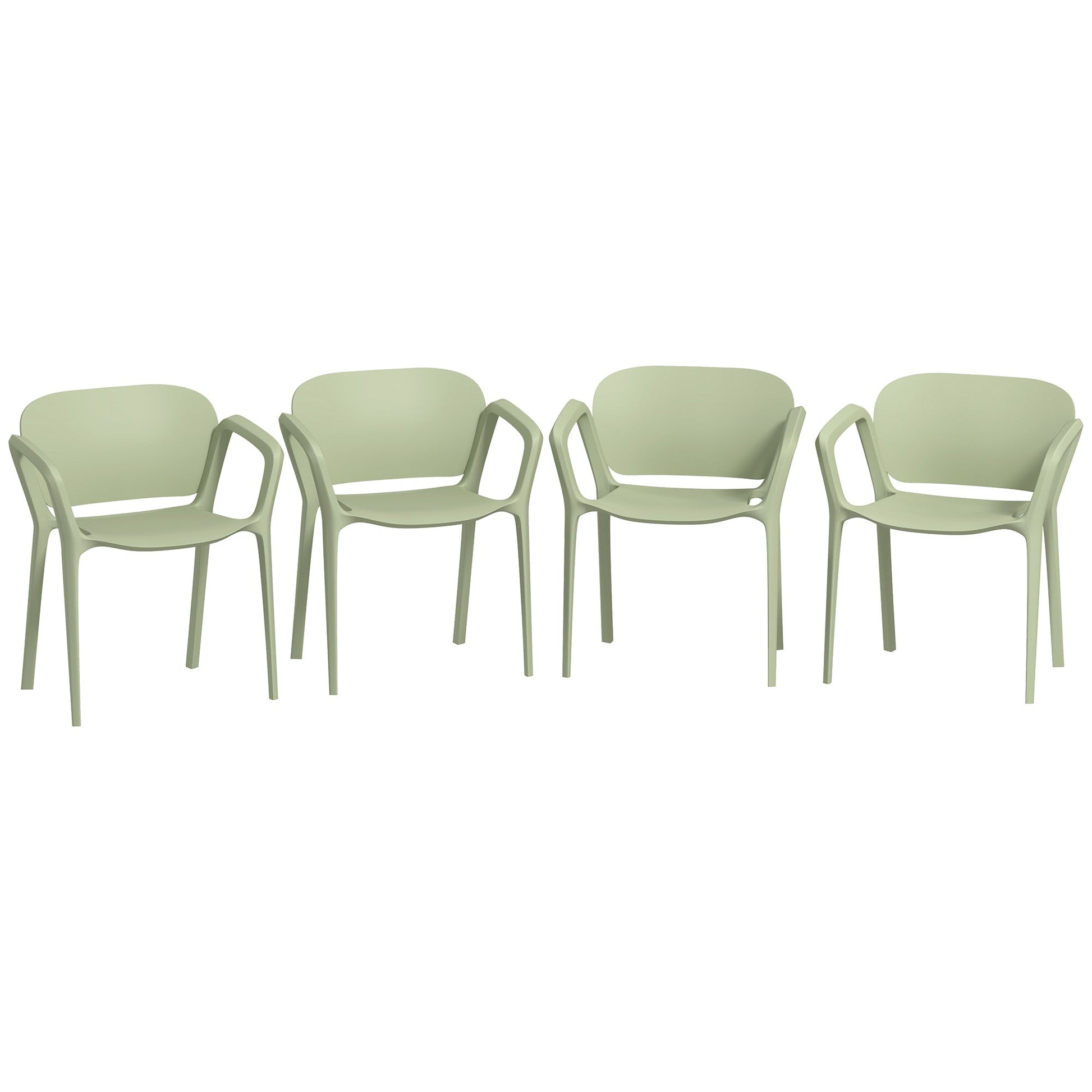 Set of 4 Stackable Garden Chairs in PP with Modern Design with Armrests 60x56x75 cm, Green