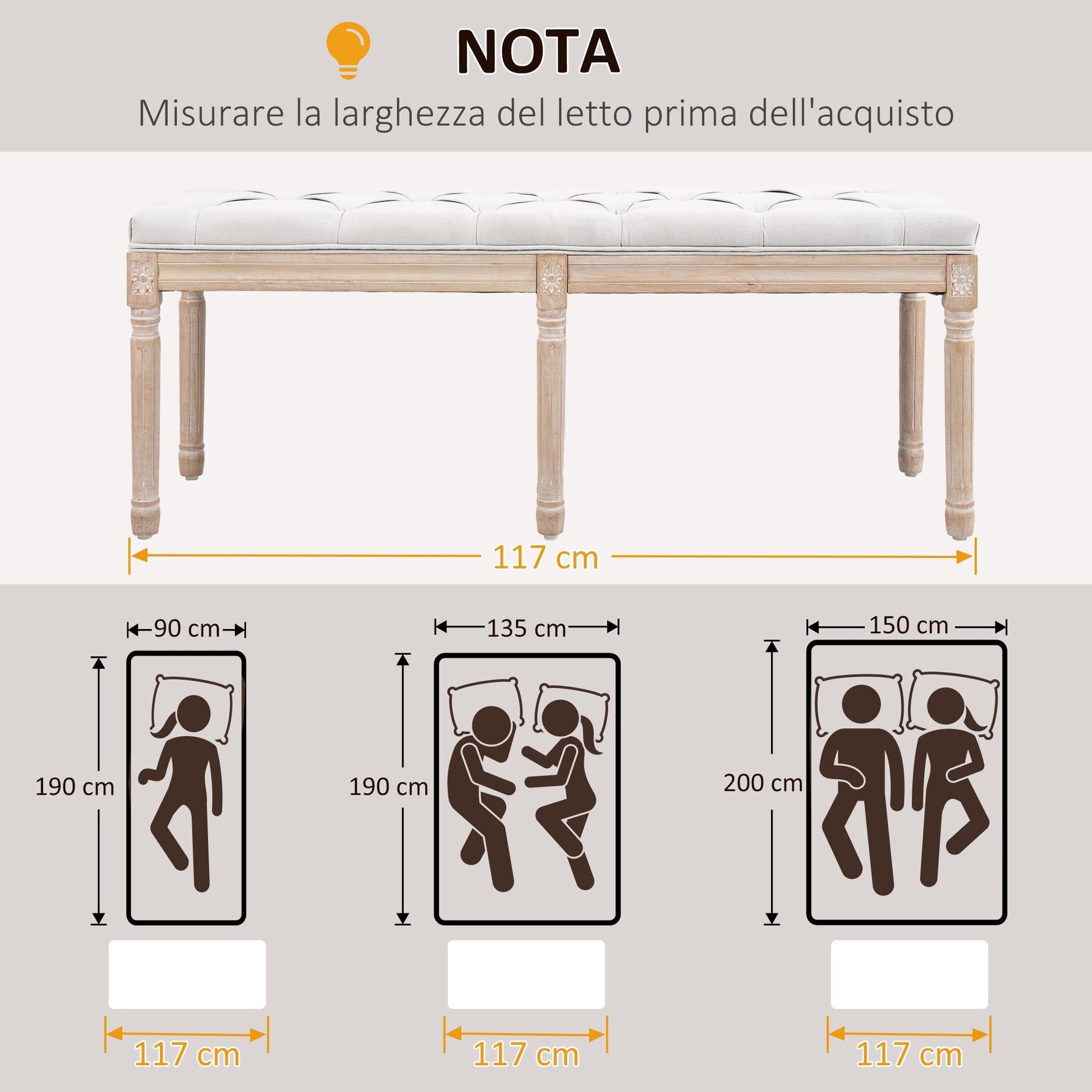 - COMFORTABLE SEAT: With a thick, padded seat covered in breathable linen-look fabric, this quilted bed end bench offers a comfortable place to sit whenever you need it.