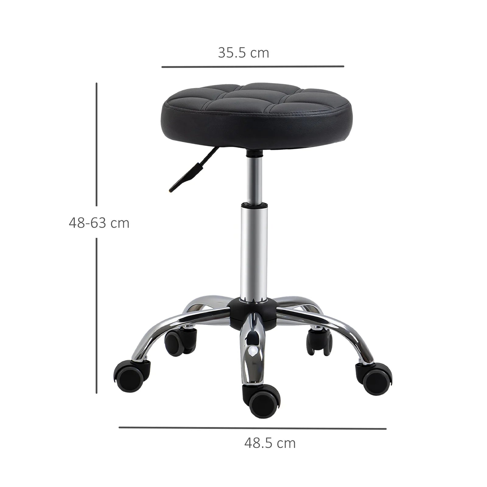 Professional Adjustable Salon Stool with Wheels – Black PU Leather Seat