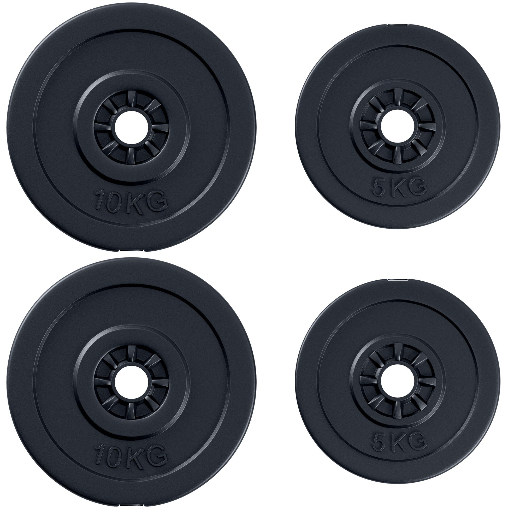 Set of 4 Weight Plates for Barbell and Dumbbells Total Weight 30kg, 2x5kg and 2x10kg, Black