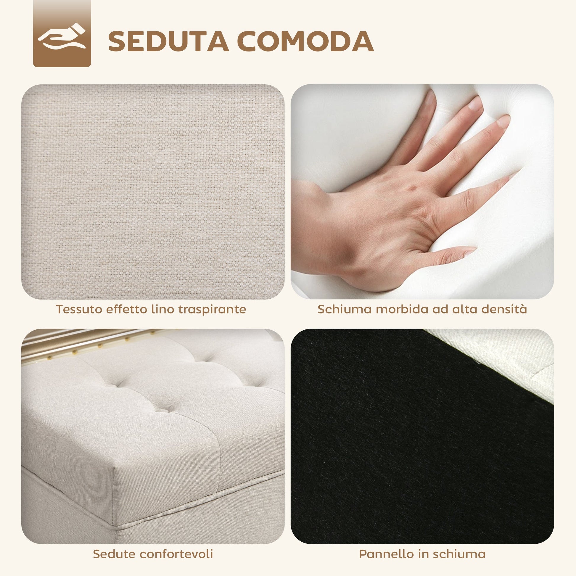 80L Padded Storage Bench with Fabric Upholstery and Wooden Legs, 118x42x45 cm, Cream