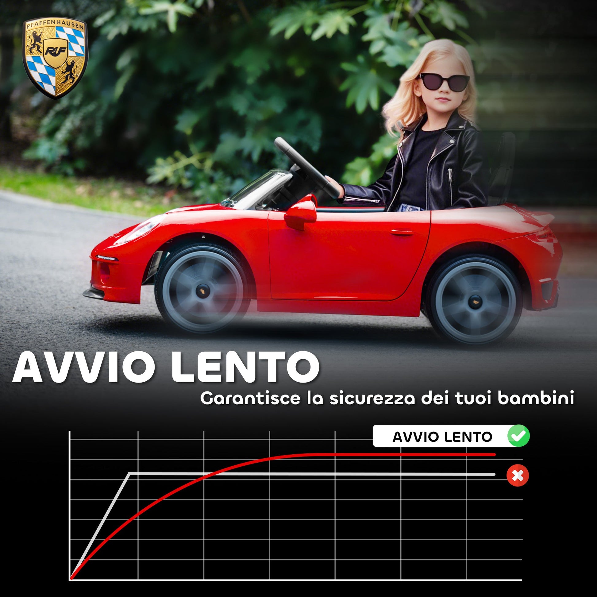 - SAFE AND SMOOTH RIDE: The slow start system prevents sudden starts, and the rear suspension mitigates irregularities in the terrain, making the electric car for children suitable for surfaces such as concrete, asphalt or paved paths.
