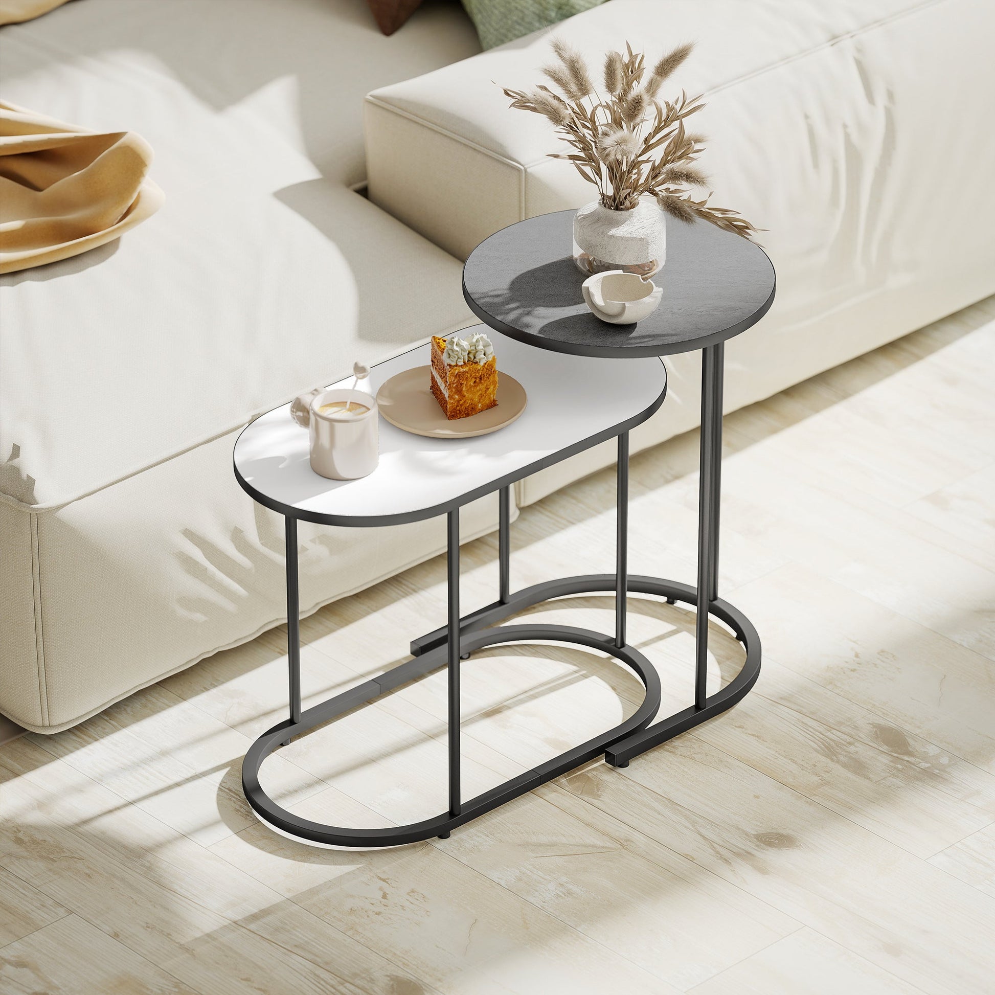 Set of 2 Stackable Coffee Tables with Metal Frame for Living Room and Office, Grey and White