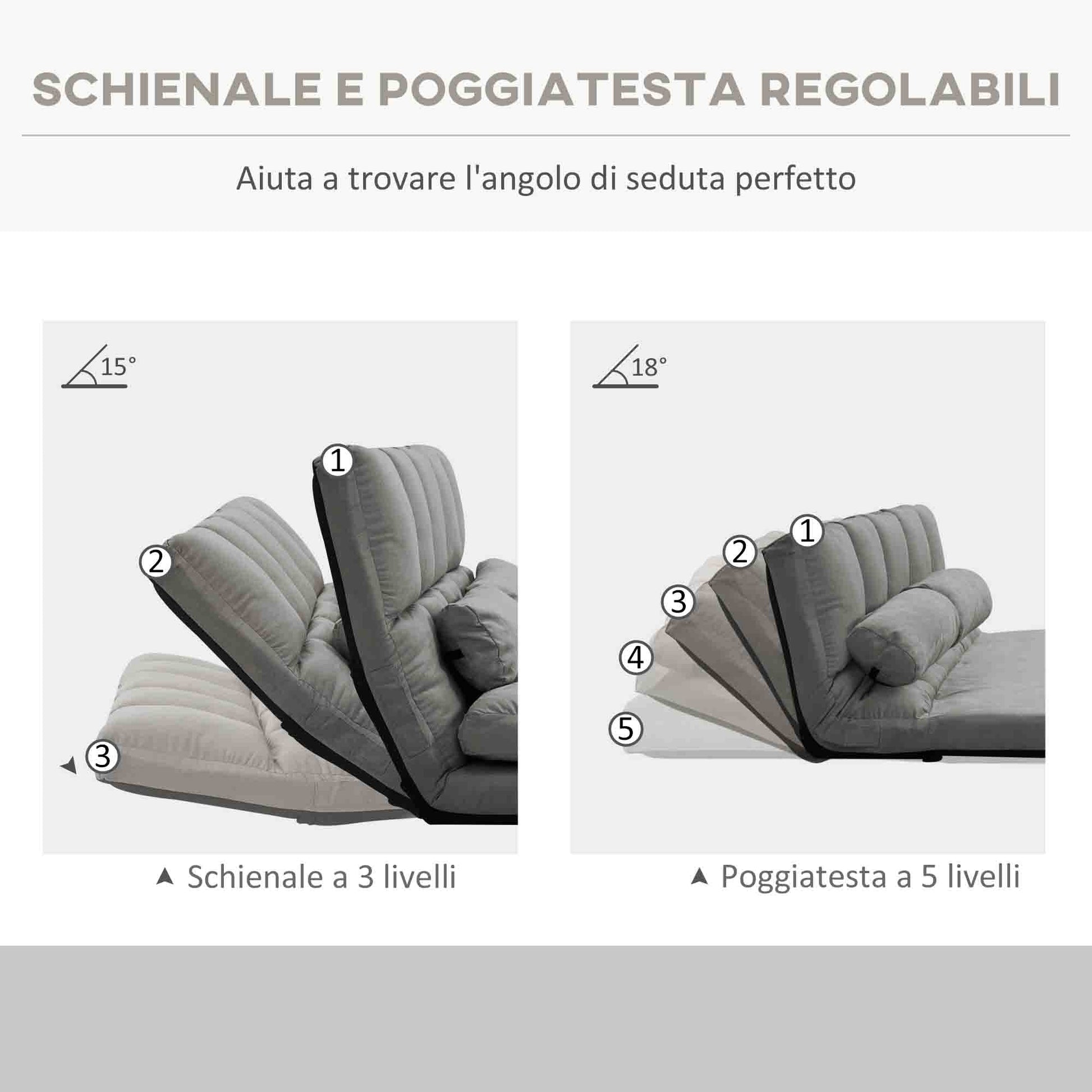 2-in-1 Floor Sofa with 7-Level Reclining Backrest and Cushions, 130x73x60 cm, Charcoal Grey